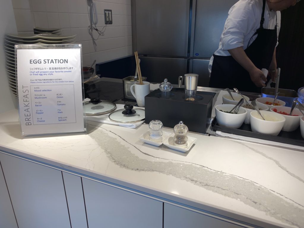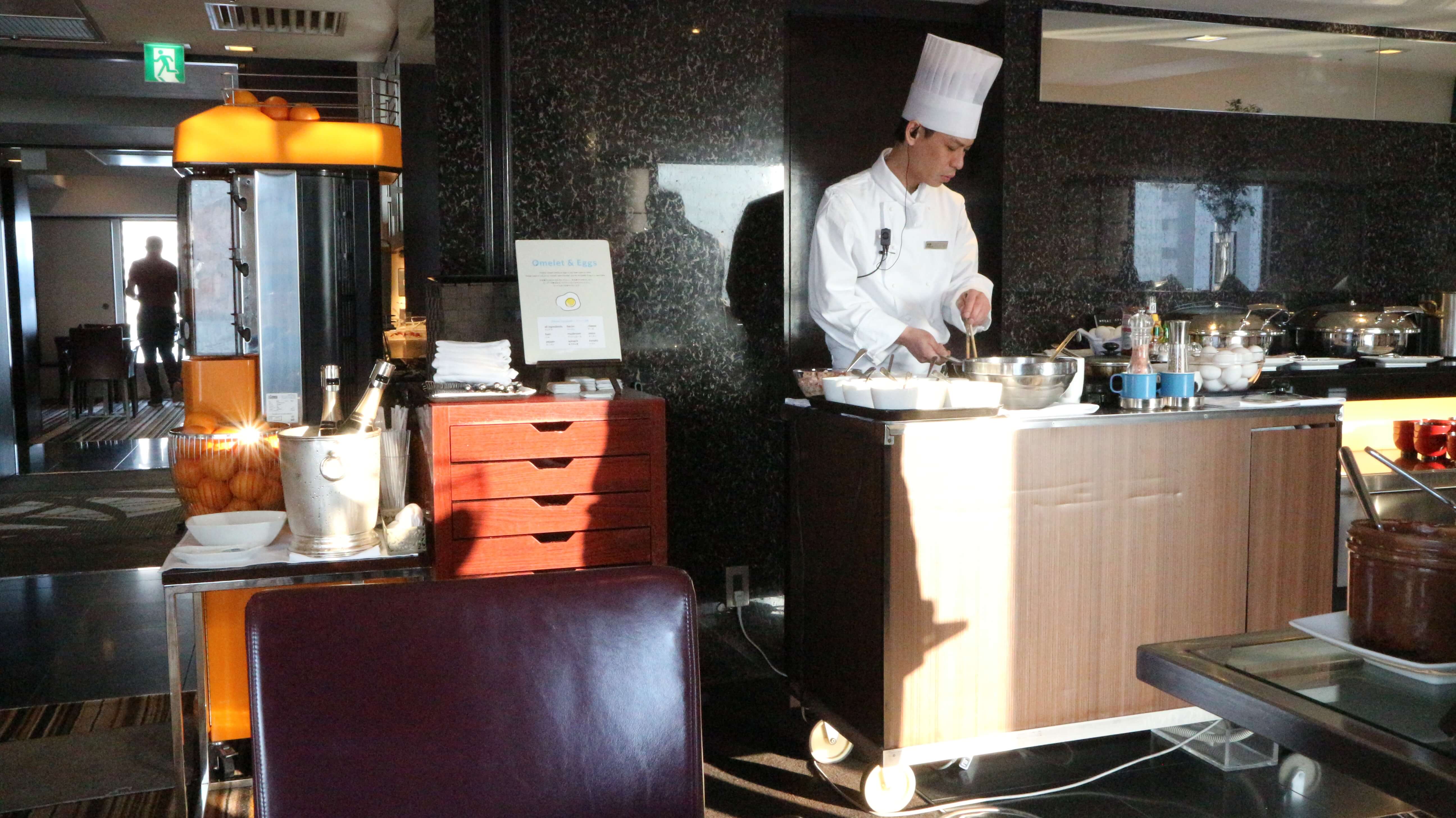こちらではシェフがオムレツ・目玉焼きを作って下さいます