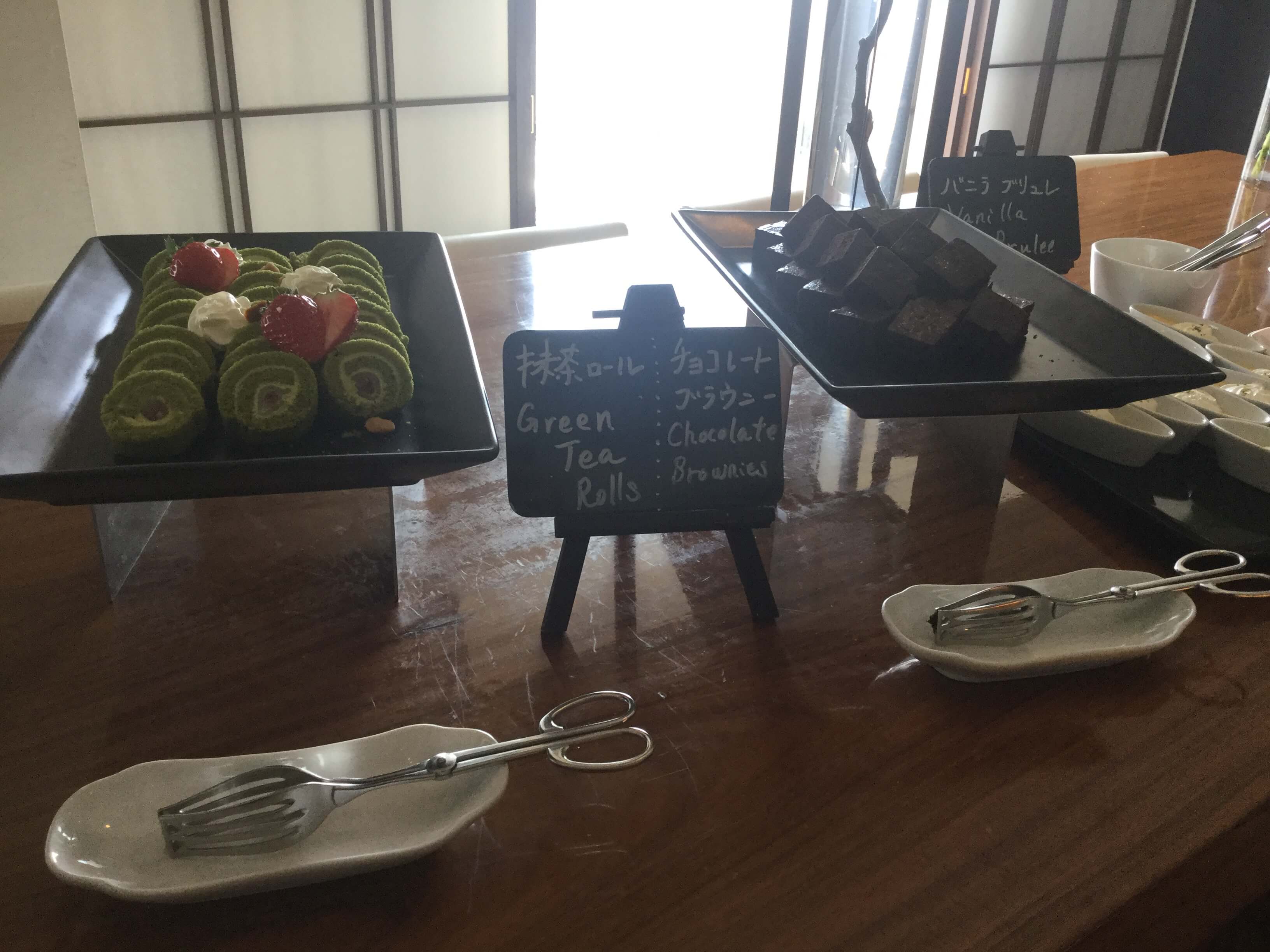 抹茶ロールとチョコレートブラウニー、バニラブリュレ、パウンドケーキ