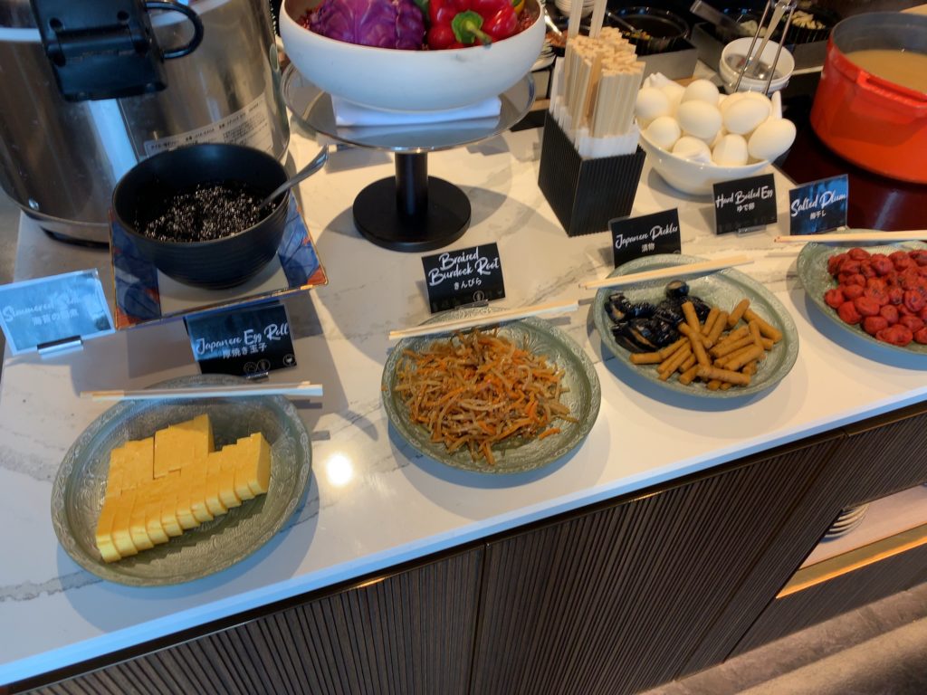 常設のエッグステーションの窓口が新設されるなどリニューアル後変化がありますが、スパークリングワインが朝飲めなくなったのは個人的に残念です。生搾りオレンジジュースやビールが飲めるのは嬉しいところですが、1階マーブルラウンジの方が品数も多いですので今後は朝食はそちらを考えることにします!