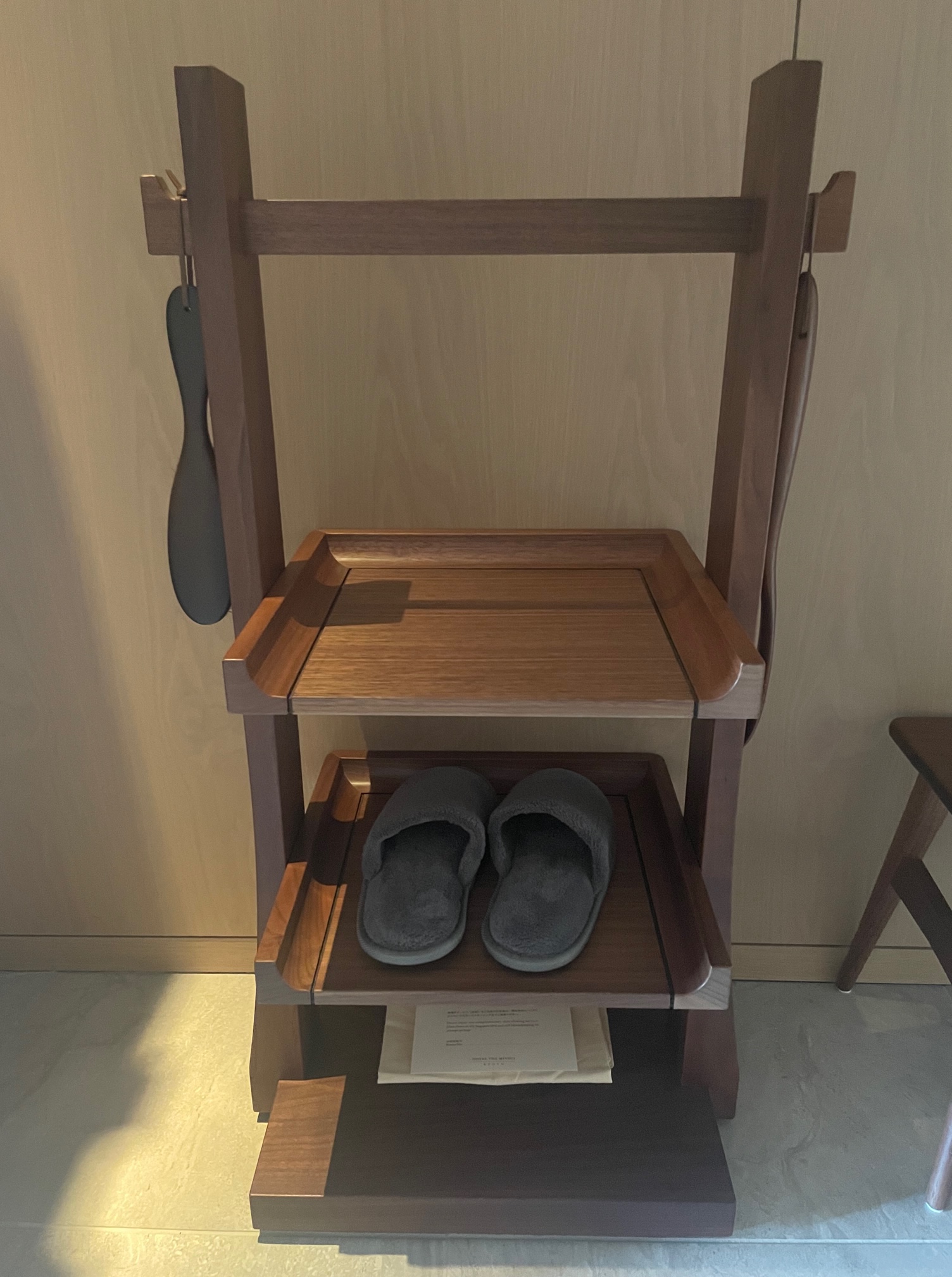 靴ベラ、ブラシも置かれています。靴磨きのサービスもあるようです。