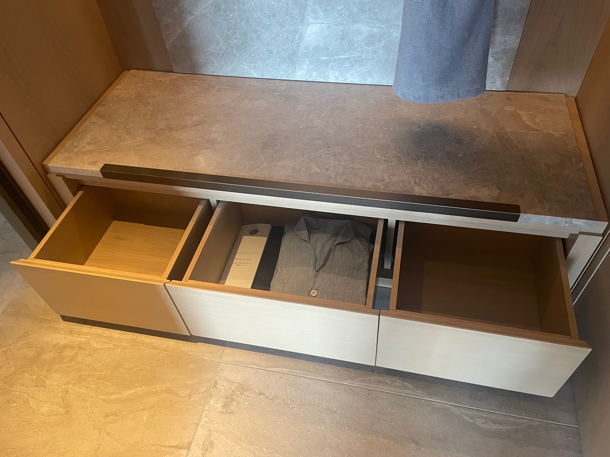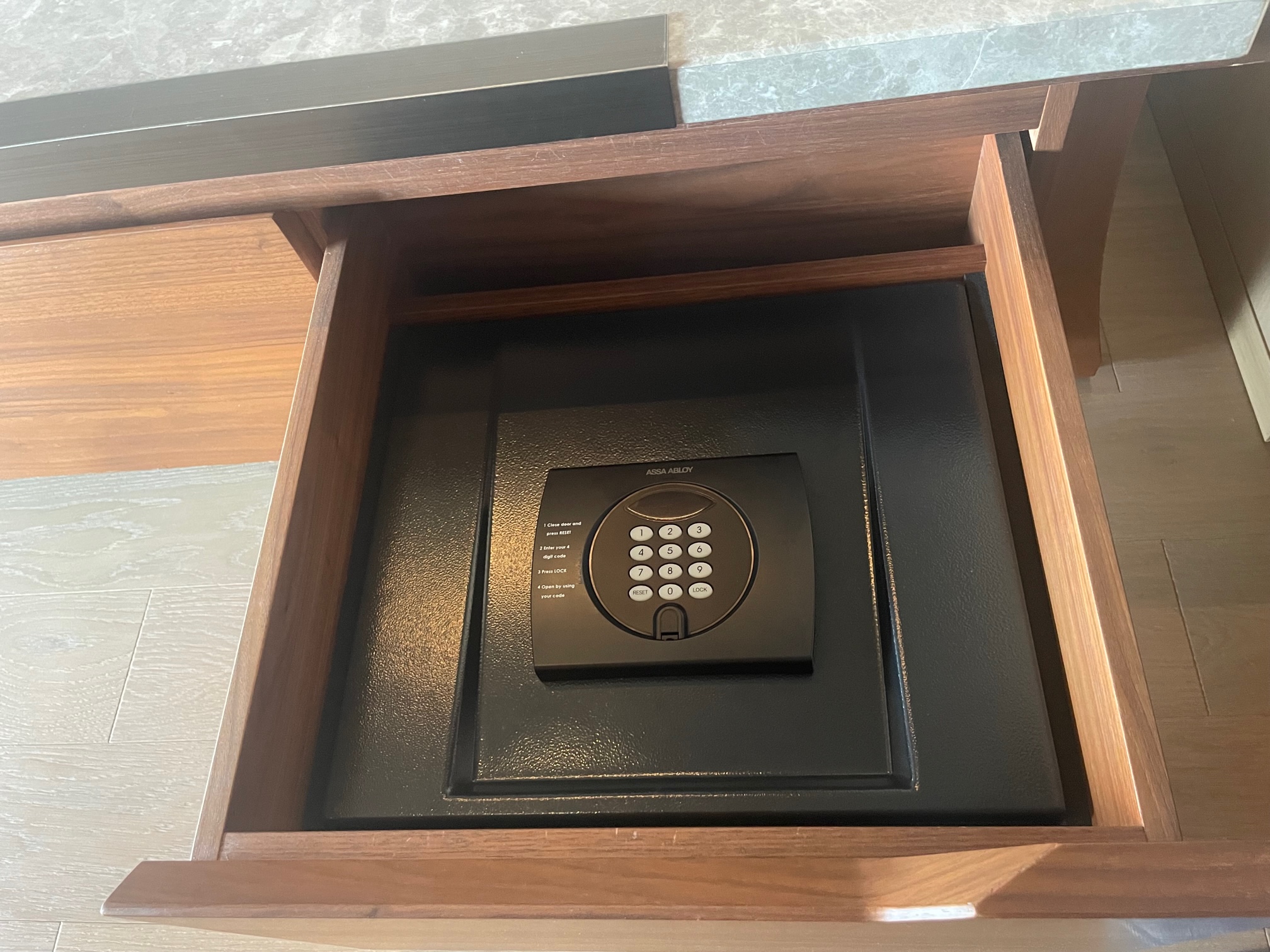 引き出しは3つありますが1つにセーフティーボックス、残りの2つは空でした