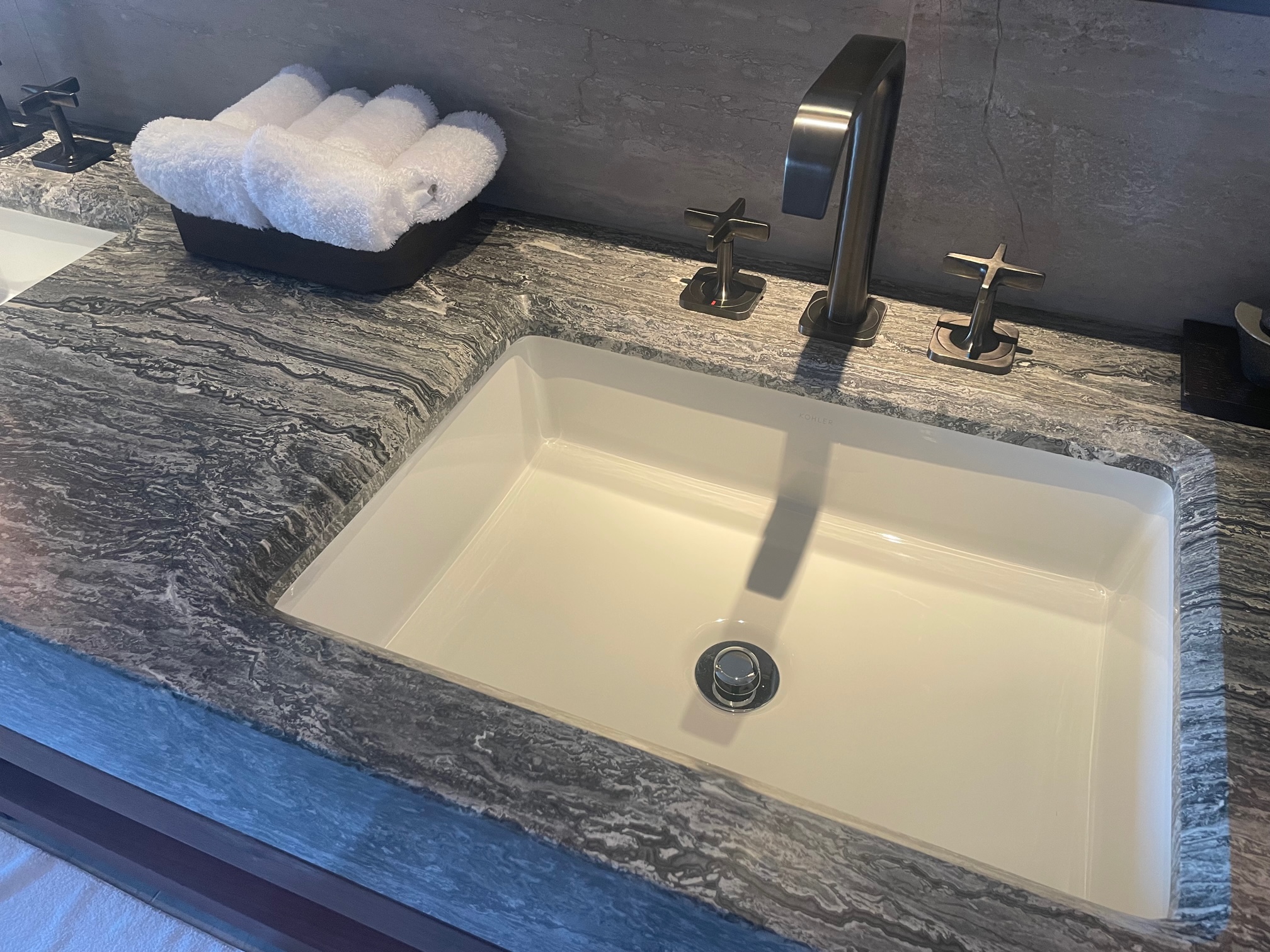 バスルームの向かいにある洗面はダブルシンクで広々としています。