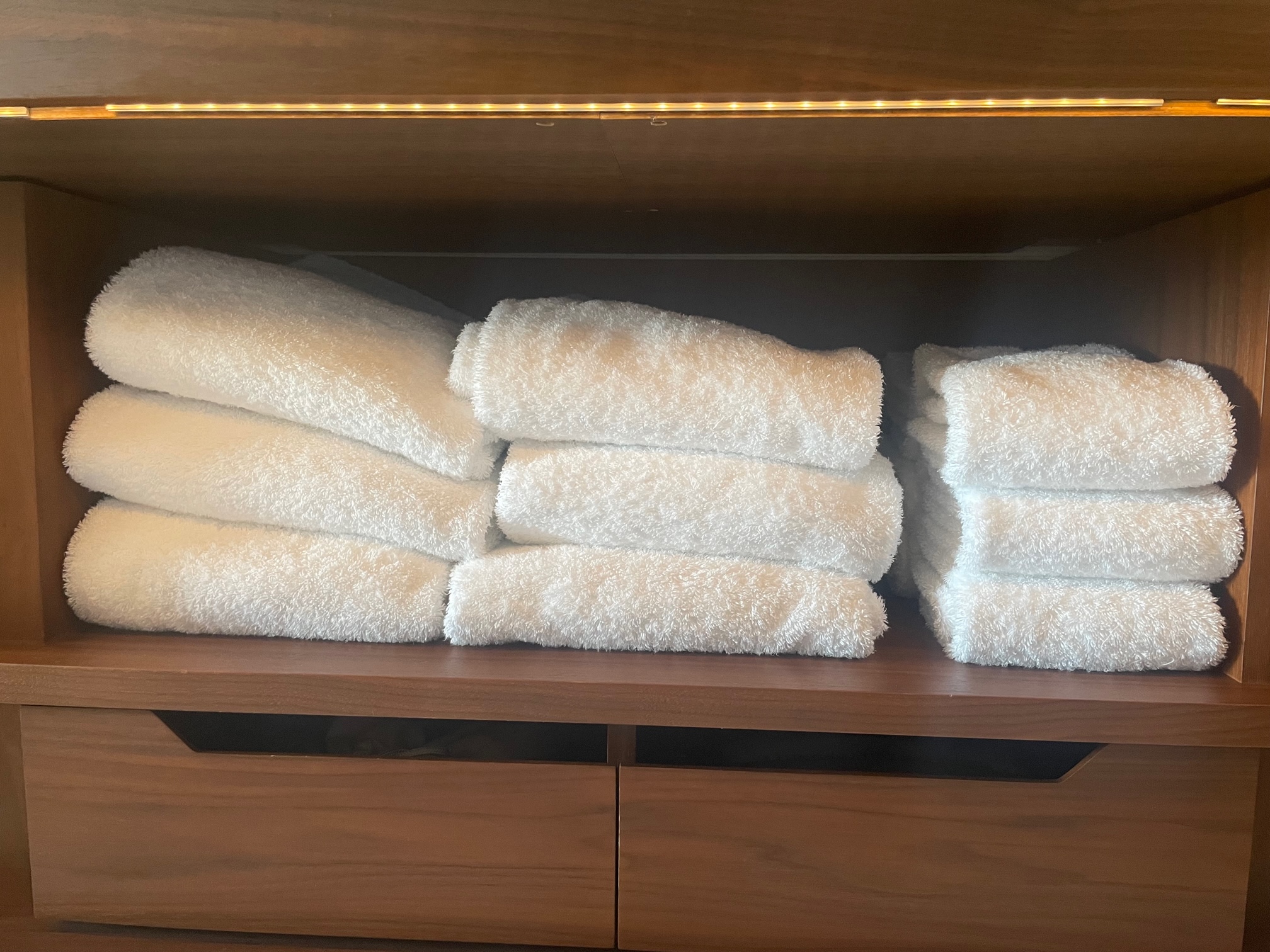 シンクの下にはタオルが置かれていますが、今治産スーピマコットンでフカフカです