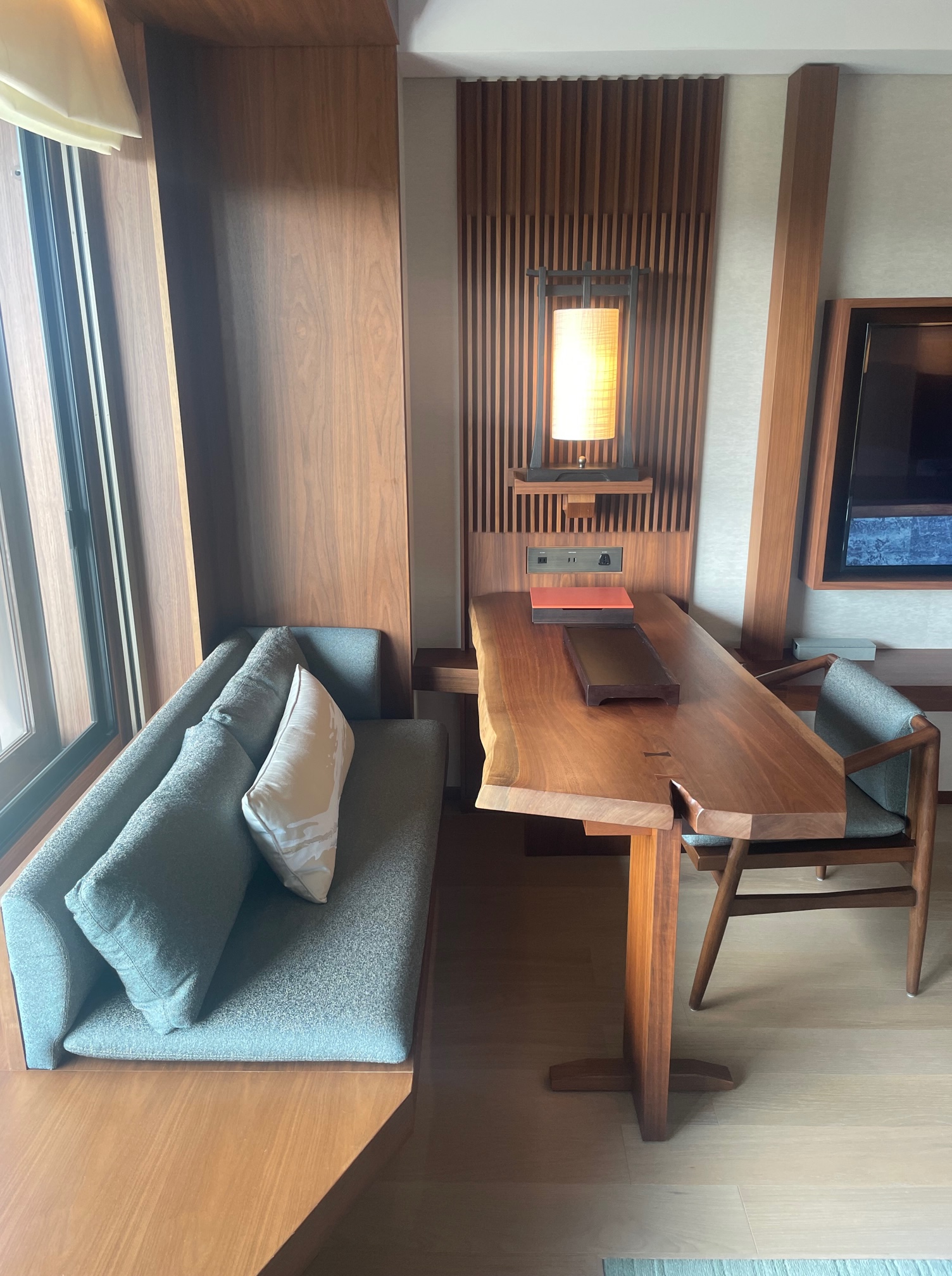 和モダンな落ち着いた雰囲気の客室なのですが「茶室」「天然素材」「工芸技術」がキーワードになっているのがよくわかります。