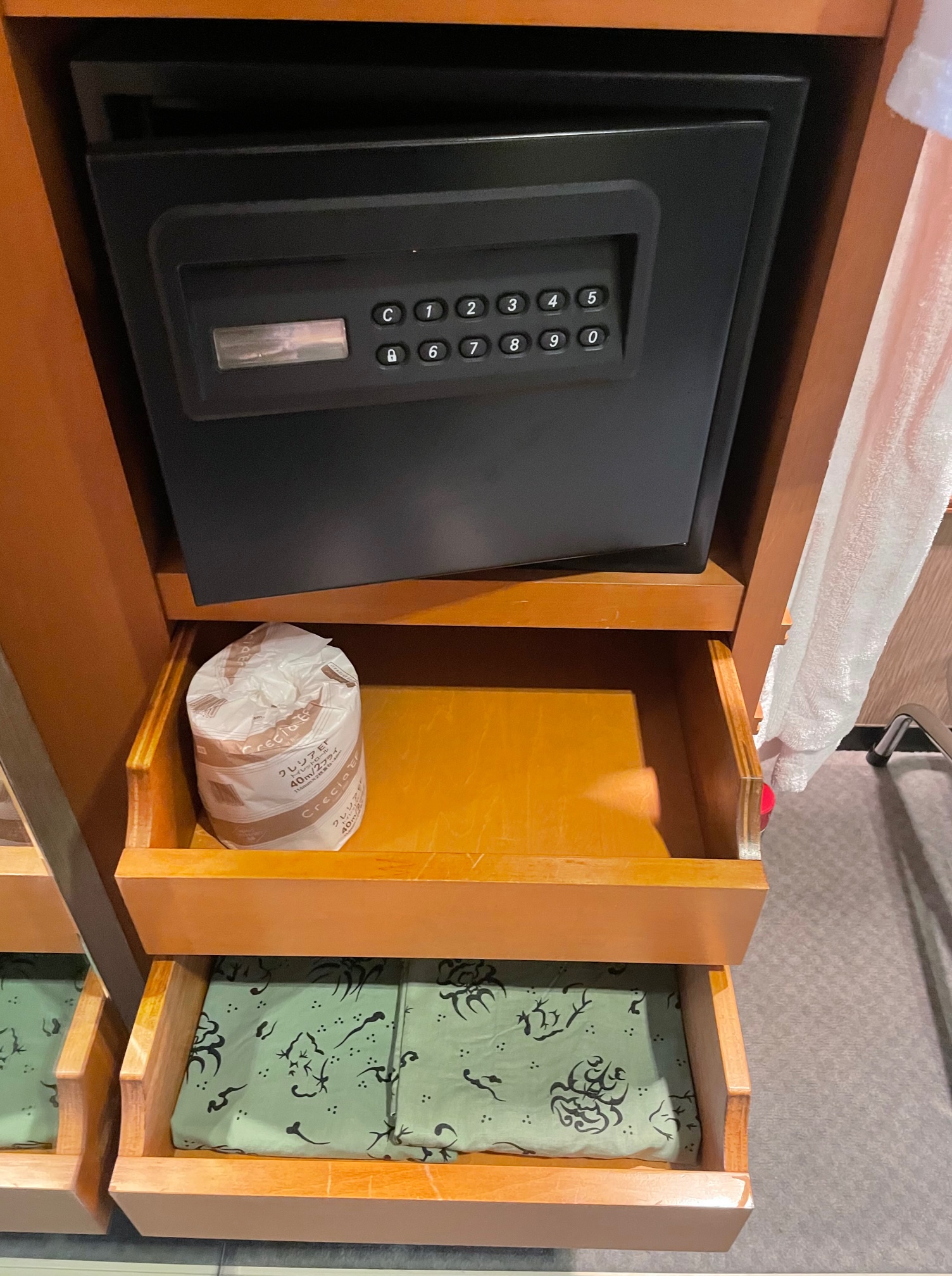 下段に引き出しにはトイレットペーパーと浴衣