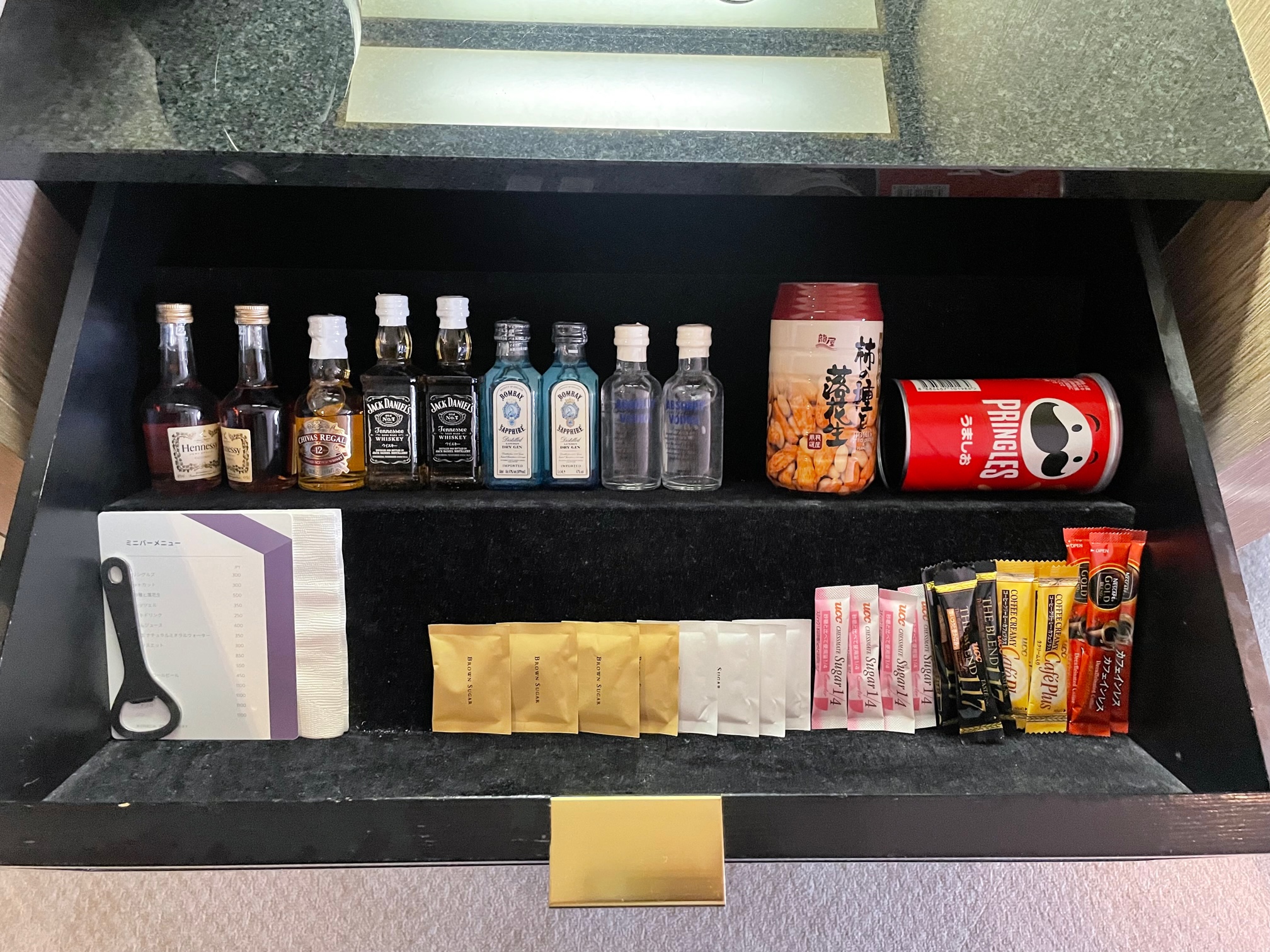 引き出し内にはミニバー