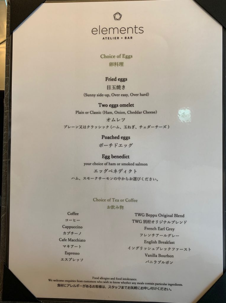 本来はエレメンツで朝食を食べるとクラブラウンジでの朝食を頂くことができません。つまり、エレメンツの朝食ブッフェとクラブラウンジ限定のオーダーメニューの両方を食べることはできないのです。しかし、2020年7月時点ではエレメンツでクラブラウンジ限定のオーダーメニューを注文できますので、エレメンツのメニューとクラブラウンジ限定メニューの両方を頂くことが可能です。ある意味チャンスなのかもしれません!