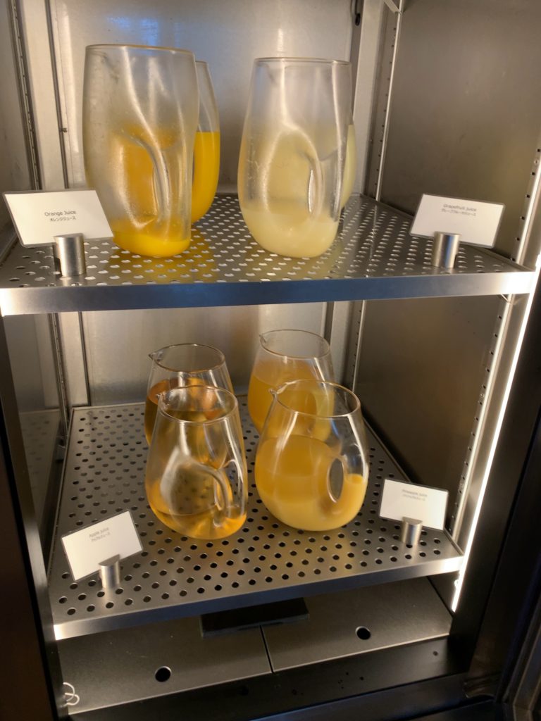 オレンジジュース、グレープフルーツジュース、アップルジュース、パイナップルジュース