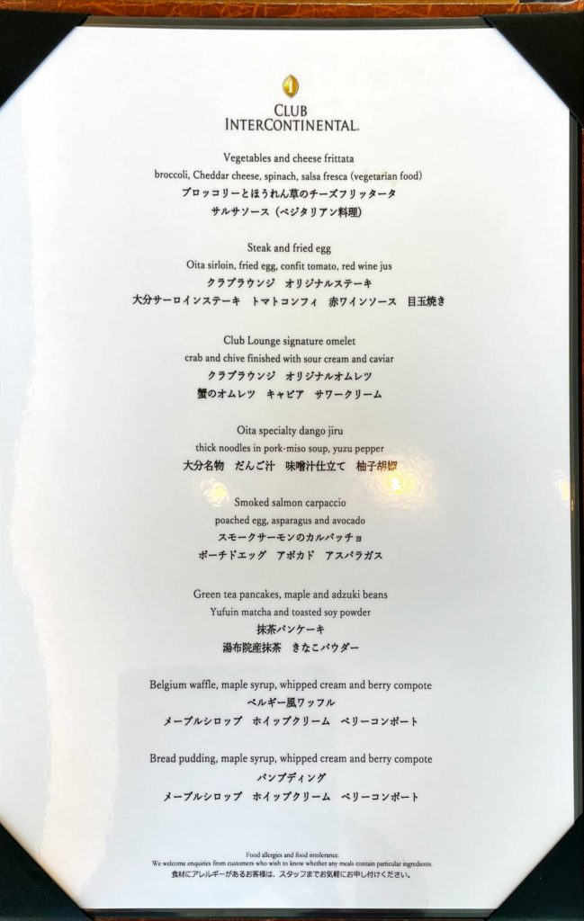 クラブインターコンチネンタル朝食メニュー