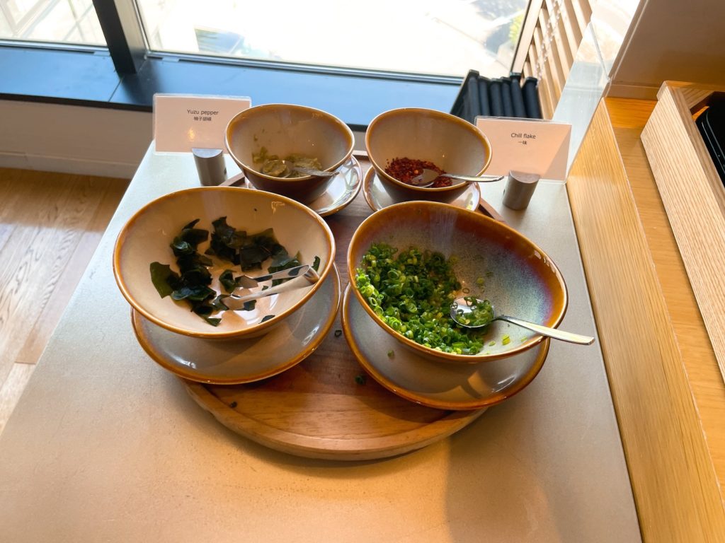 柚子胡椒、一味、わかめ、ねぎ
