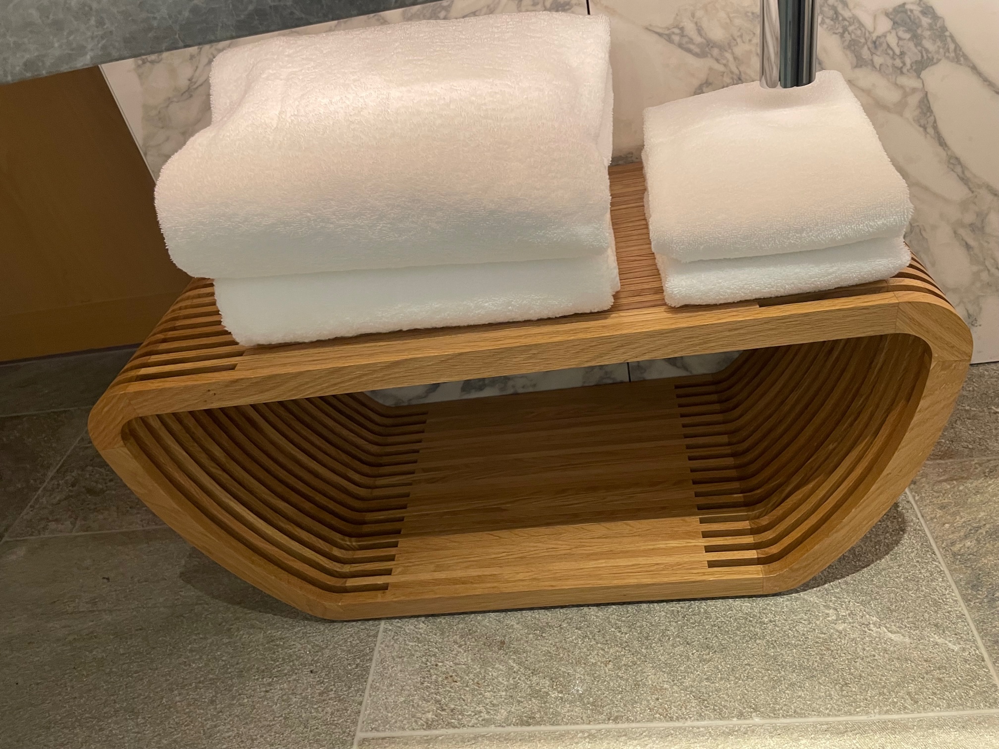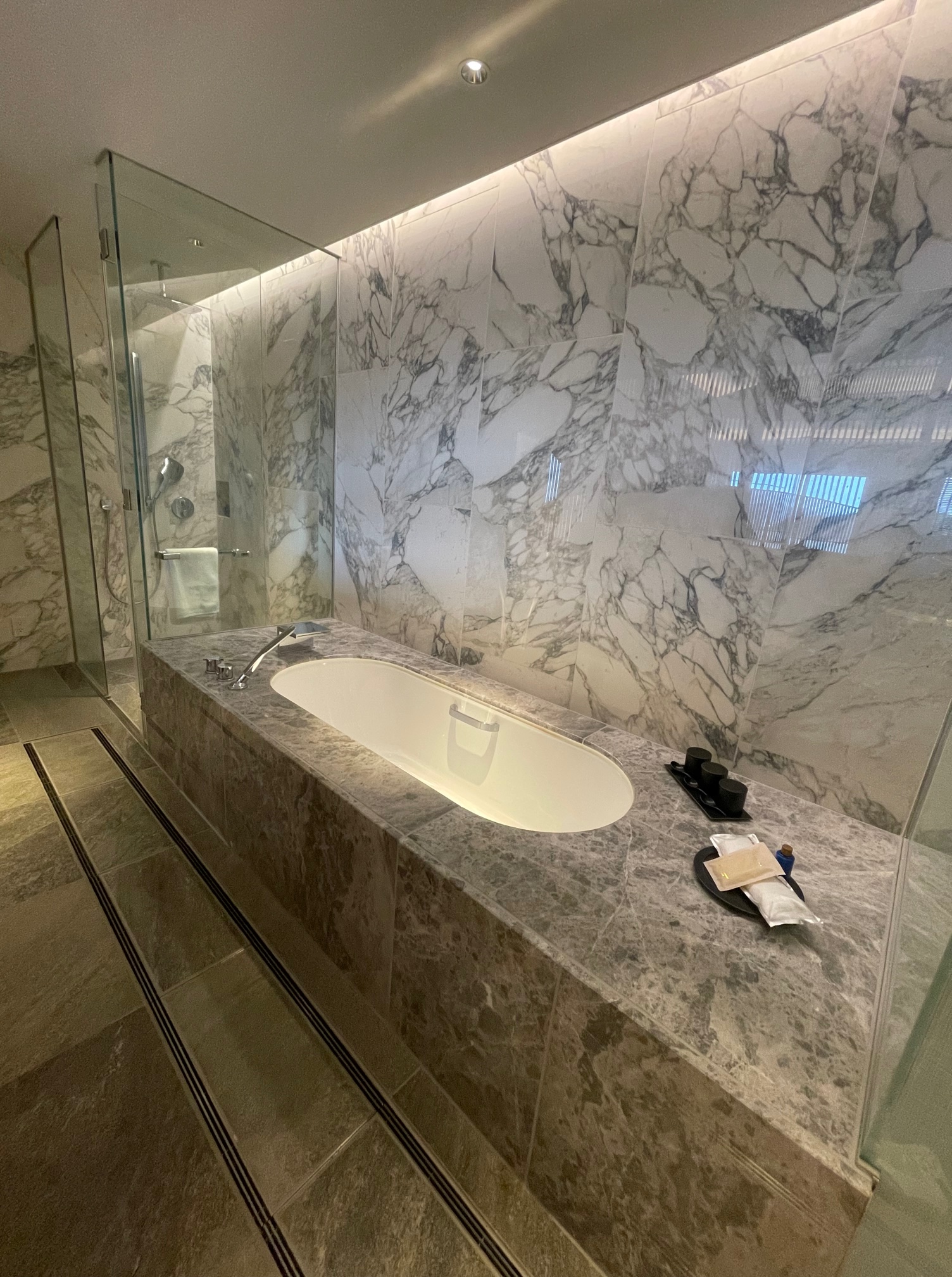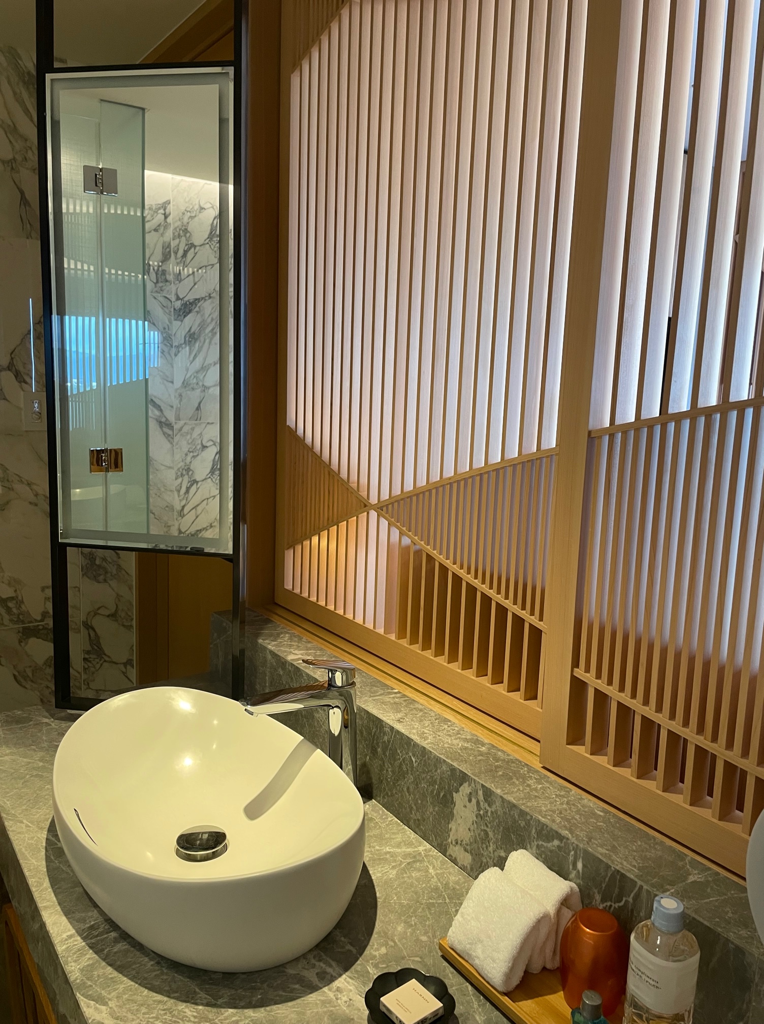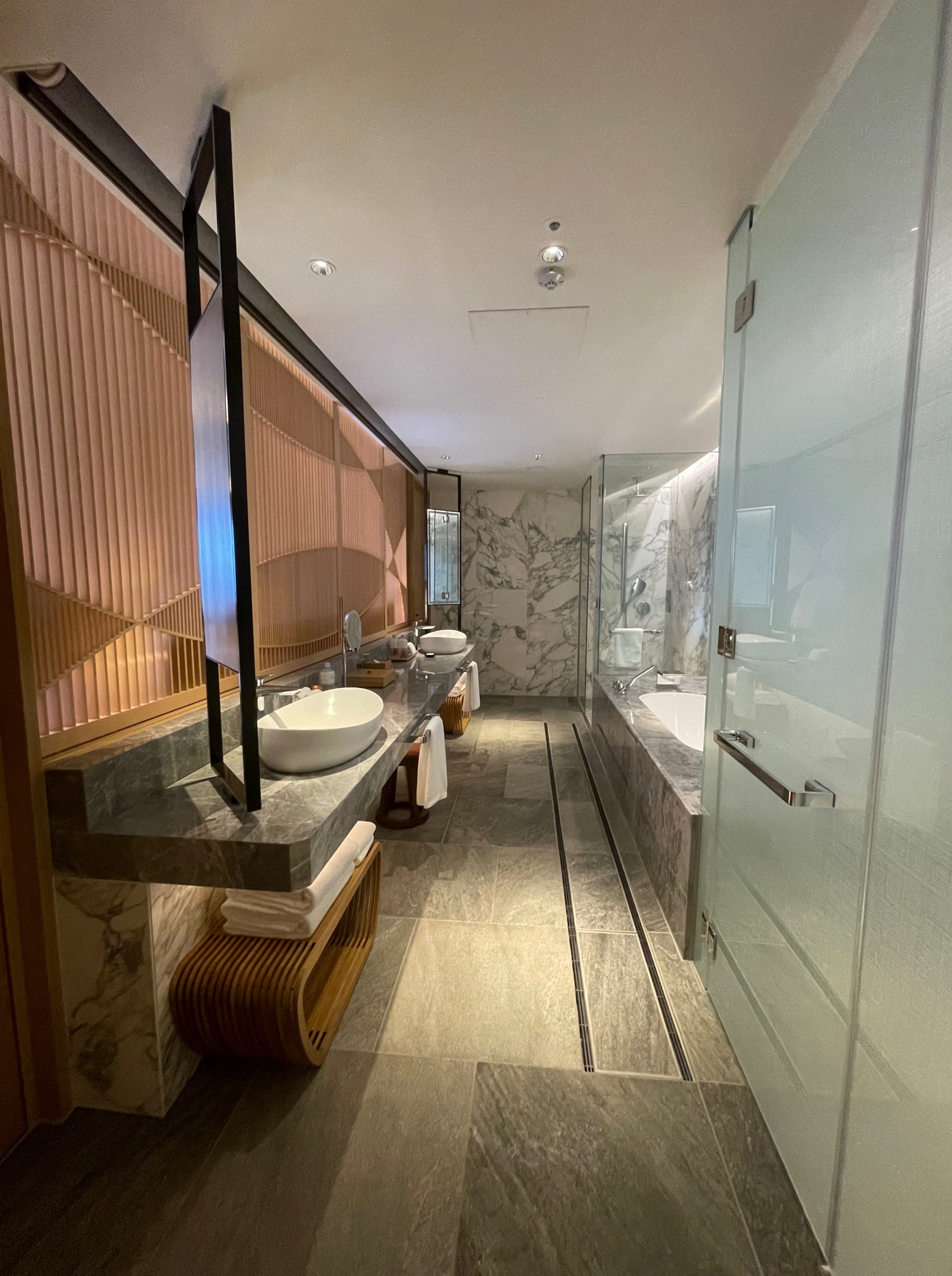 部屋の見取り図がなくお示しできませんが、クローゼット⇔ウェットエリア⇔ベッドルーム⇔リビングルーム⇔クローゼットとぐるぐる回れる動線で、広さも十分で温泉露天風呂もあり個人的にはとても好きな部屋でした。