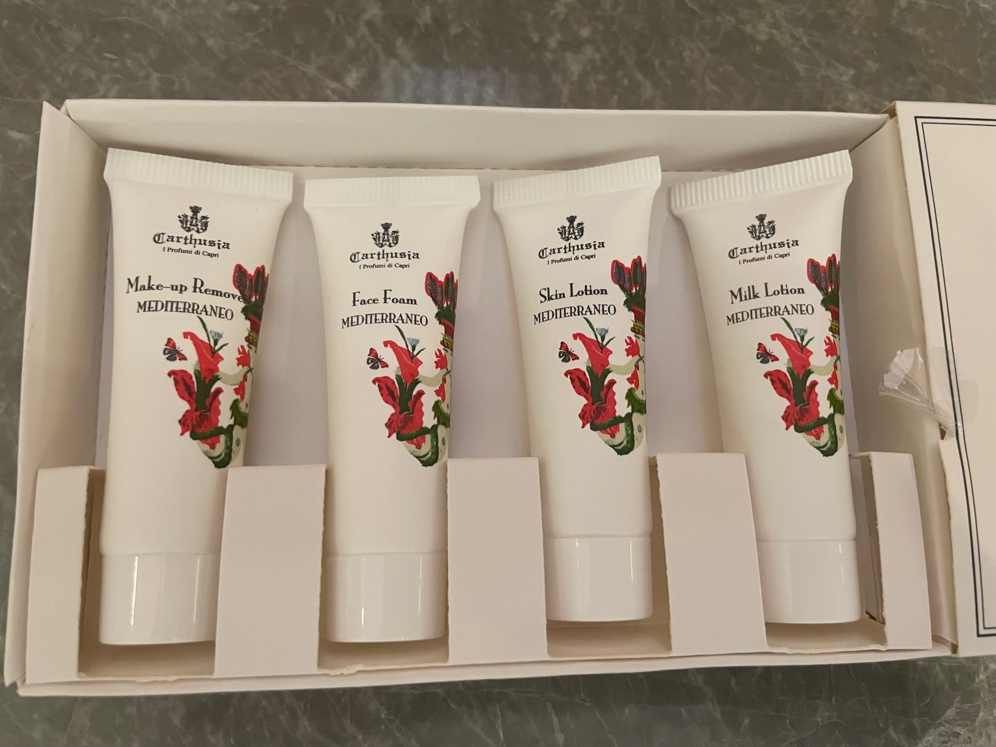 カルトゥージアのスキンケアセットが置かれていました。今までIC別府で見かけたことなかったので、ジュニアスイートだから置かれていたのか、新たに他の部屋にも置かれるようになったのかは不明です