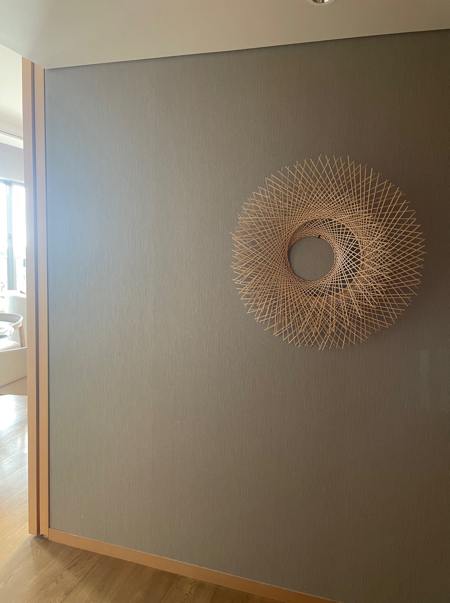 リビングルームとベッドルームは寄木細工?組子細工?の引き戸で仕切られています。こういう引き戸は開放感を損なわないので良いですね。
