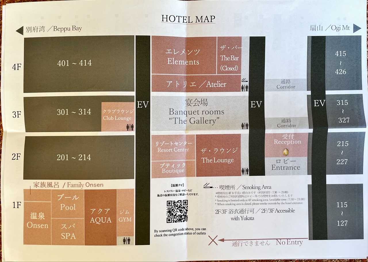 地図で位置関係を整理しましょう。赤矢印が「ANAインターコンチネンタル別府リゾート&スパ」となります。