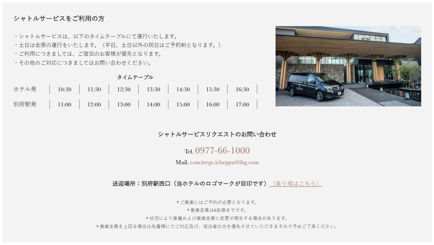 JR別府駅とインターコンチネンタル別府間にはホテルシャトルバスが運行されています