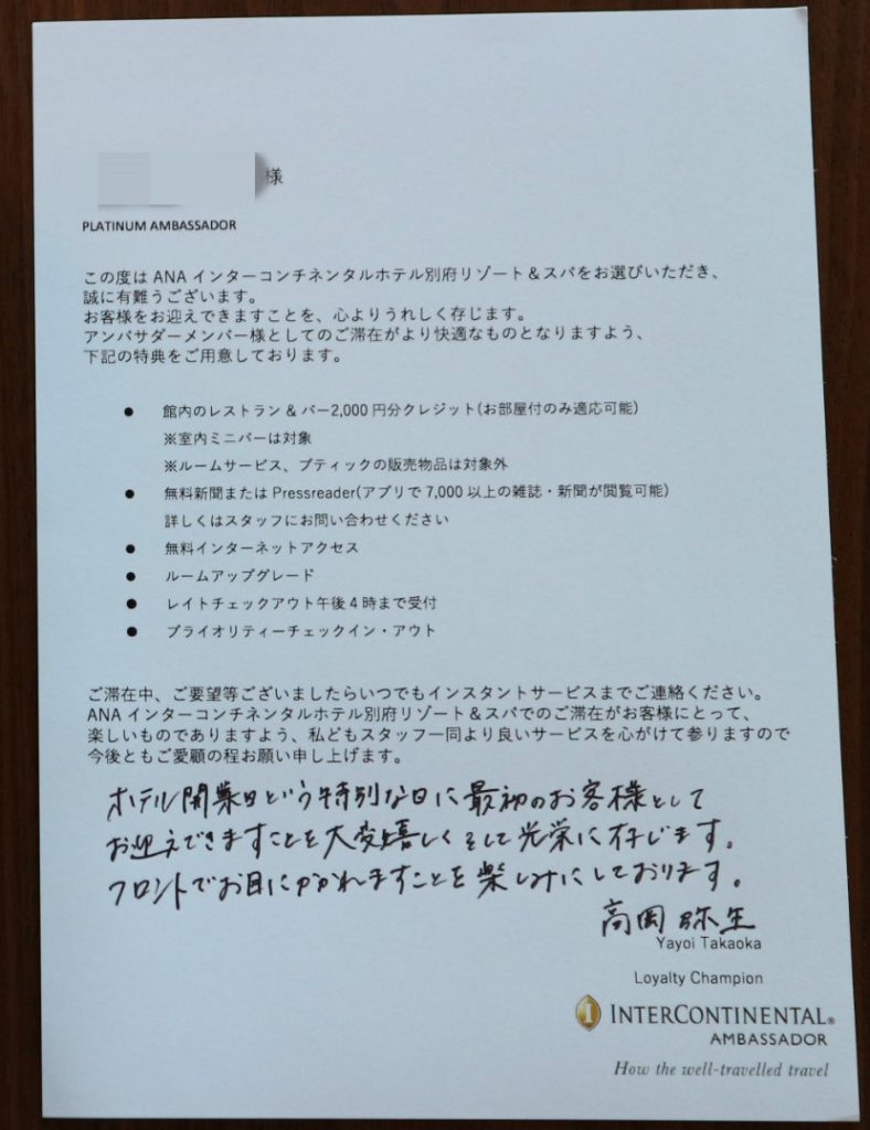 ANAインターコンチネンタル別府リゾート&スパ インターコンチネンタルプラチナアンバサダー特典