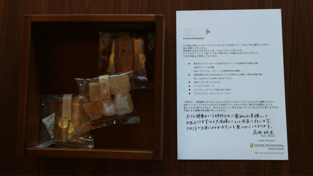 ANAインターコンチネンタル別府リゾート&スパのプラチナアンバサダー特典は以下の通りです