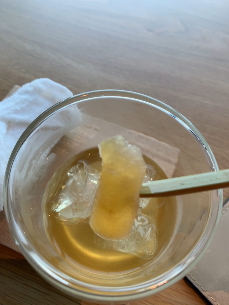 バーでフラリシングフォレストというオリジナルカクテル(2300円)を頂きました!シャンパンベースでジャパニーズクラフトジン、カボス、シュガーシロップが入ったものでした。