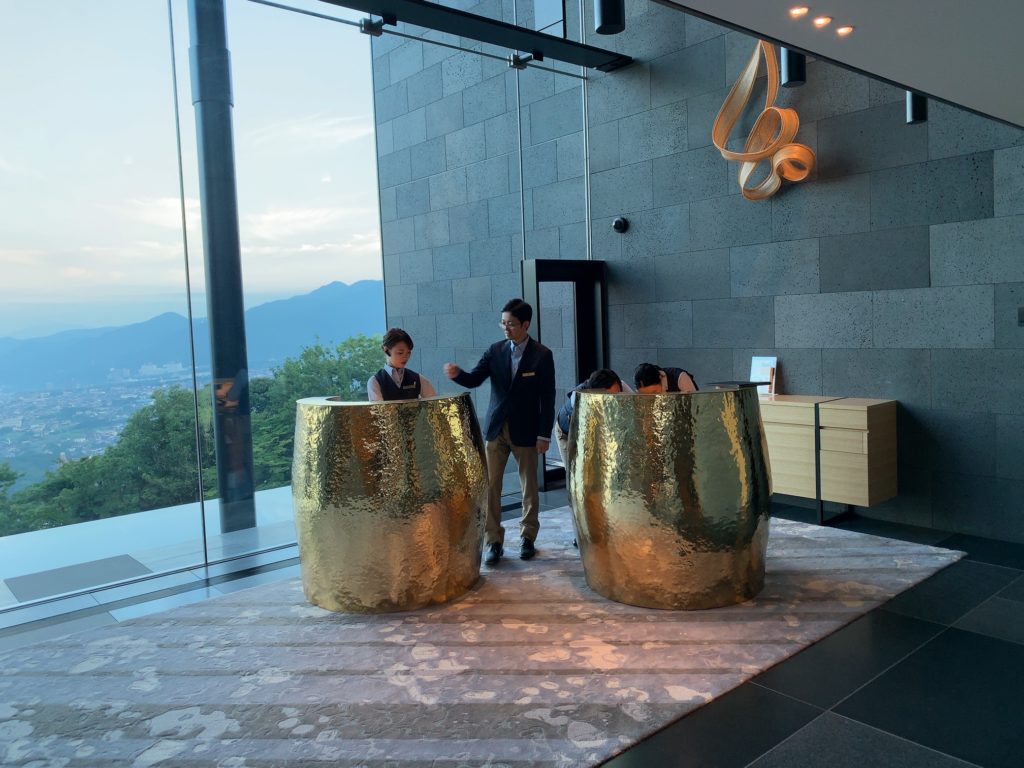 キレイな写真が撮れなかったので公式サイトからお借りしましたがこのようにエントランス突き当りの大きな窓からは別府の山々や別府湾を眺めることができます