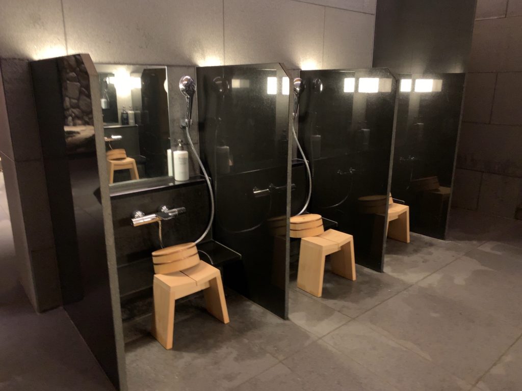 洗い場はこんな感じです。木の椅子と木桶が温泉らしい雰囲気です