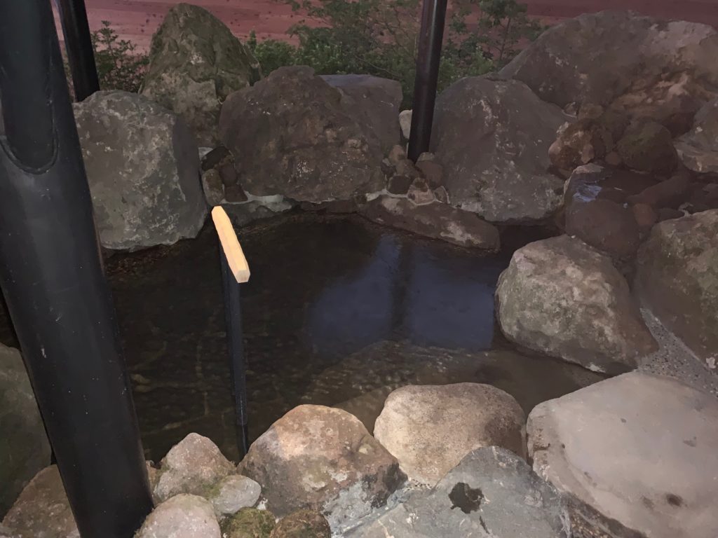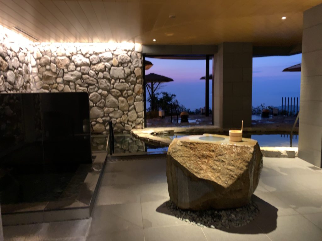この日は岩風呂のような雰囲気の方でした。前日は木の雰囲気のお風呂でした