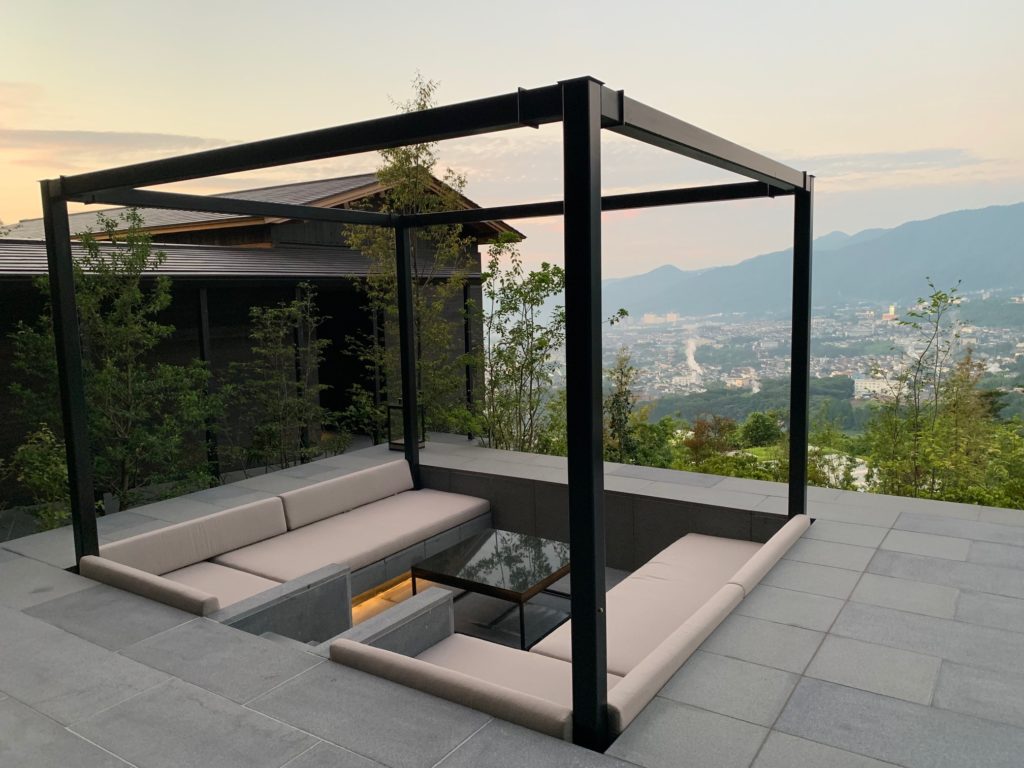 全室テラス付きで別府の山々や温泉郷からの湯けむり、別府湾といった景色を楽しむことができます