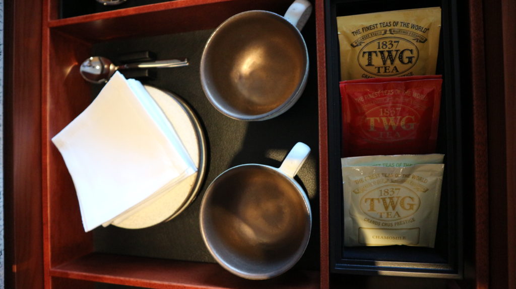 チェックイン時にウェルカムドリンクとしてTWG製のホテルオリジナルブレンドのお茶が提供されます。