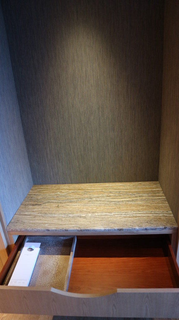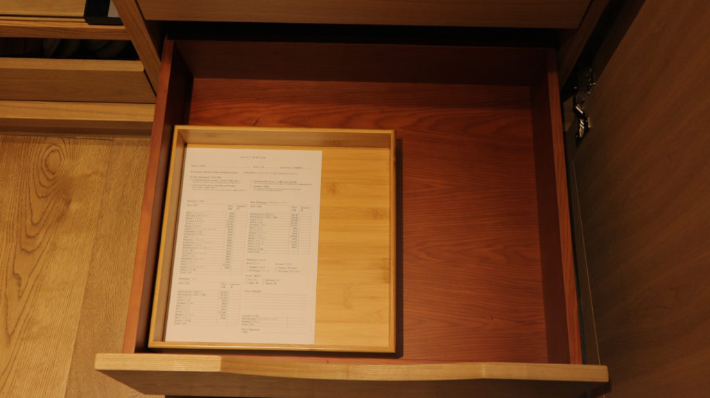 クローゼットの横にはラゲッジスペースがあります。引き出しを開けるとルームサービス朝食のメニューが入っていました