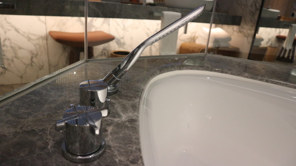 浴槽にもシャワーがついています。手前の栓をひねるとシャワー、逆にひねると浴槽にお湯を貯めることができます。