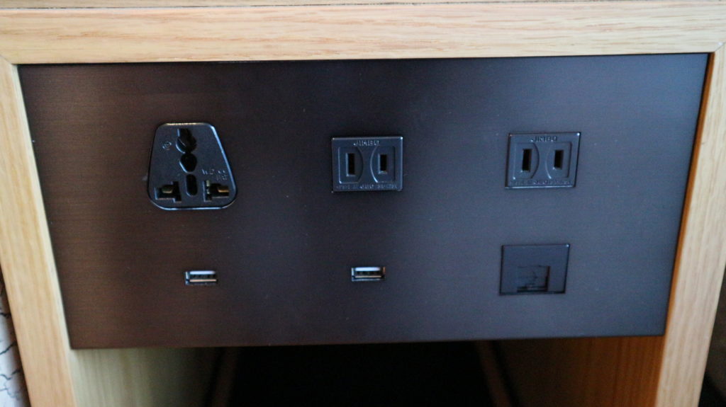 こちらにはマルチコンセント、コンセント2口、USBコンセント、LANポートがあり、隣のテーブルでPC作業などもしやすいです。