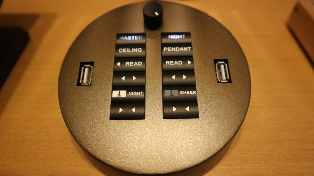 タッチパネルは照明全て、ブラインドの操作もワンタッチで可能で便利です。その上USBコンセントが2つついています