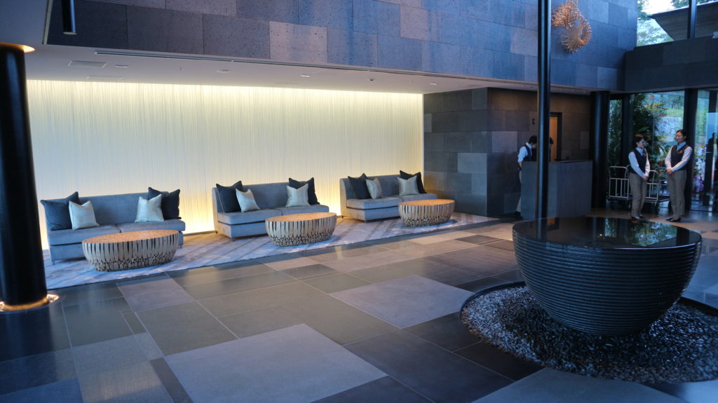 チェックインはエントランスのソファに座って行います。クラブルーム以上の客室に宿泊される場合はクラブラウンジでのチェックインも可能なようです。