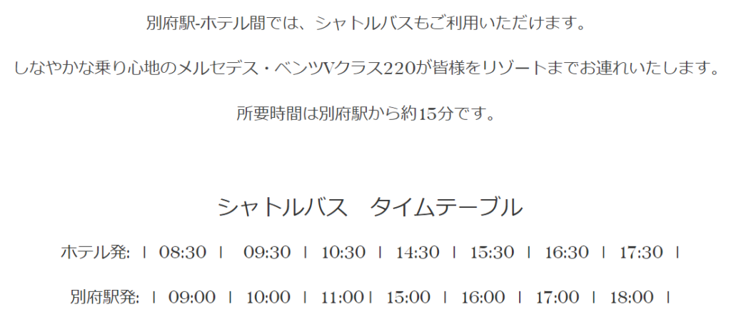 JR別府駅とインターコンチネンタル別府間にはホテルシャトルバスが運行されています
