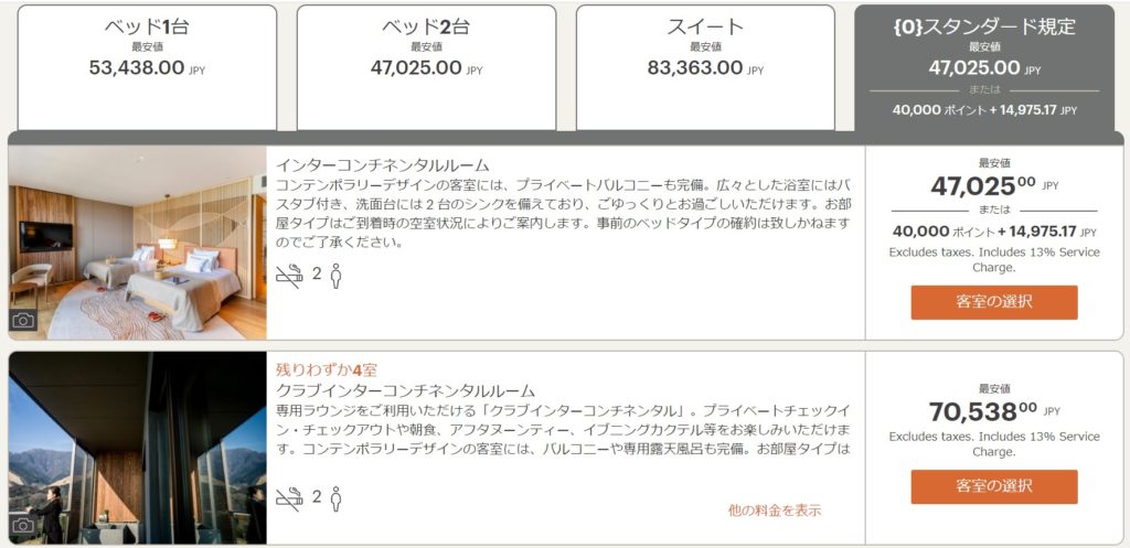 今回はポイント宿泊でデラックスルームの予約となっていたので「20000円支払いますのでクラブアクセス権を付けて下さい」とお願いしたところ、私がスパイアアンバサダーということでデラックスルーム⇒プレミアルームに無料アップグレード、さらに15000円/泊(税サ抜)の支払いでクラブインターコンチネンタルツインにアップグレードという形を取って下さいました。おかげで良い部屋に滞在できクラブラウンジサービスも受けられて大変満足度の高い滞在となりました。