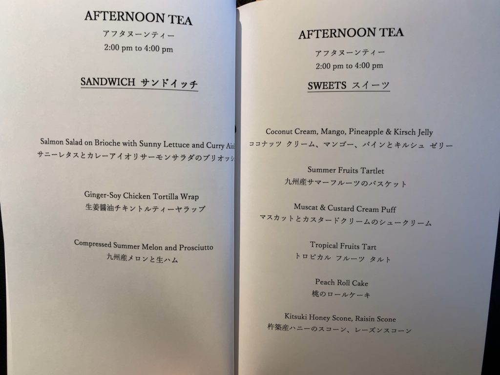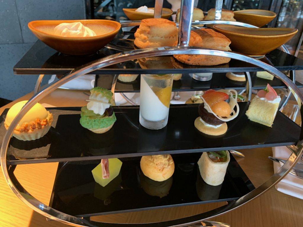 アフタヌーンティーの時間帯では3段トレイでサンドイッチやスコーン、スイーツが提供されます。