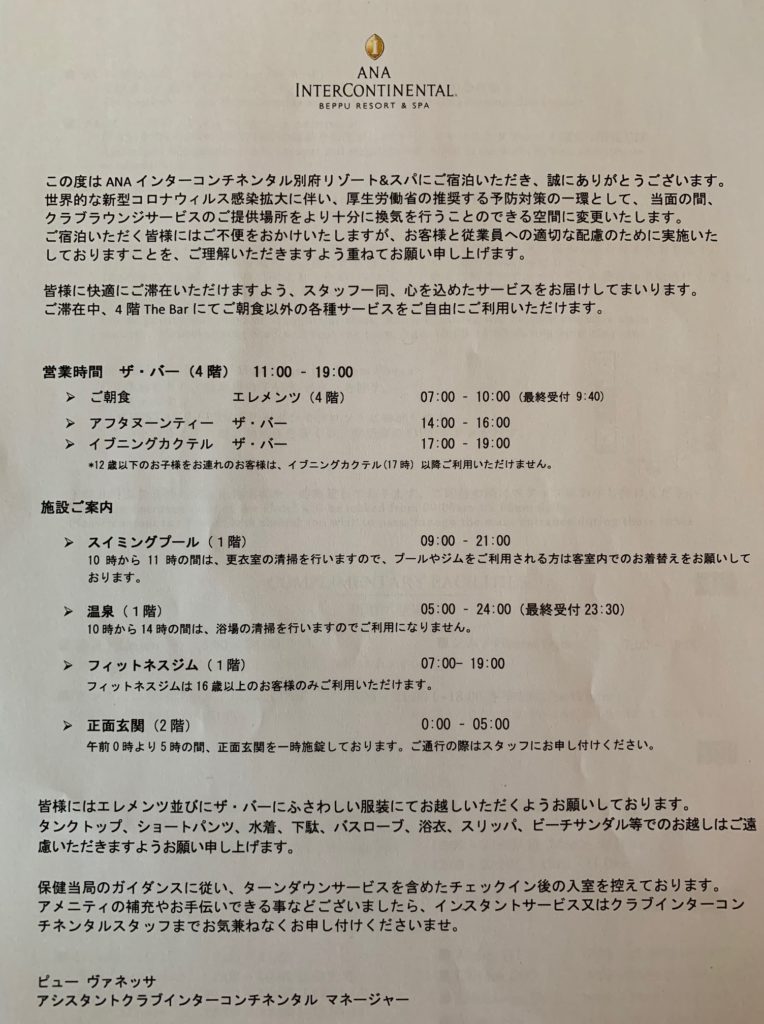 ANAインターコンチネンタル別府リゾート&スパ クラブインターコンチネンタルラウンジ営業時間