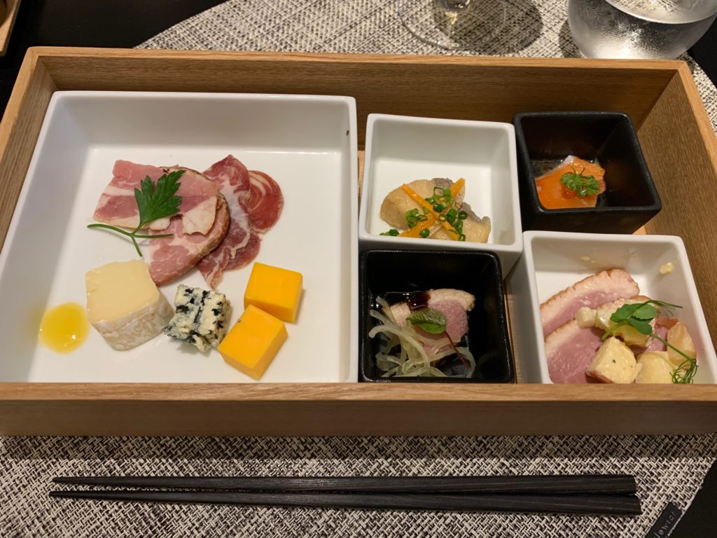 実際に提供されたコールドカナッペです。2種類どころか4種類とチーズとコールドミートが提供されました。
