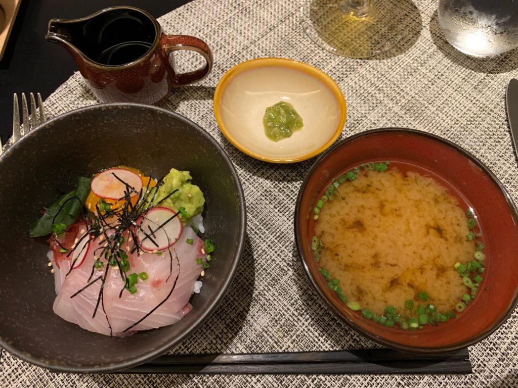 カナッペだけでは足りなかったのでポケボール(2500円)を追加しました!家内と取り分けるつもりだったところ予め2人分に分けて提供してくださいました。ですから写真はハーフポーションとなります。大分県産の鮮魚と大分県産安心院米が使われており、お値段の割には満足できる海鮮丼でした
