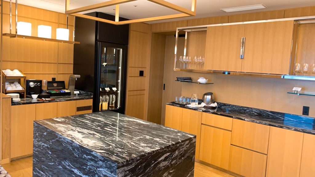 入って左側のスペースはこのような感じです。クラブラウンジへのアクセス権が付与される客室は31室しかありませんのでこじんまりとしています。