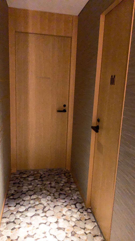 トイレは2ヶ所あります。奥の方の扉はシャワールームと表記されていますが、シャワーブースも付いているトイレです。