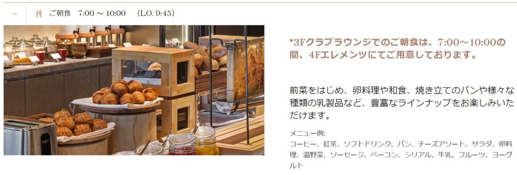 朝食は上述の通り、私の滞在中はエレメンツでハーフブッフェ形式orオーダーブッフェ形式での提供に加えて、クラブラウンジオリジナルメニューも注文できるという美味しいところ両取り状態でした。詳細につきましては下記の記事をご参照下さい!