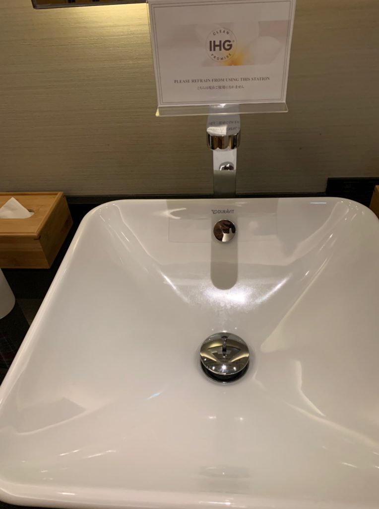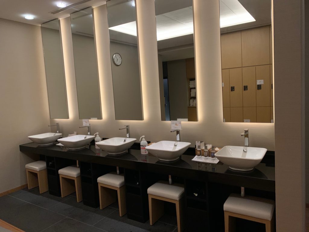 2020年夏はコロナ対応で利用できる洗面台も間引かれていました