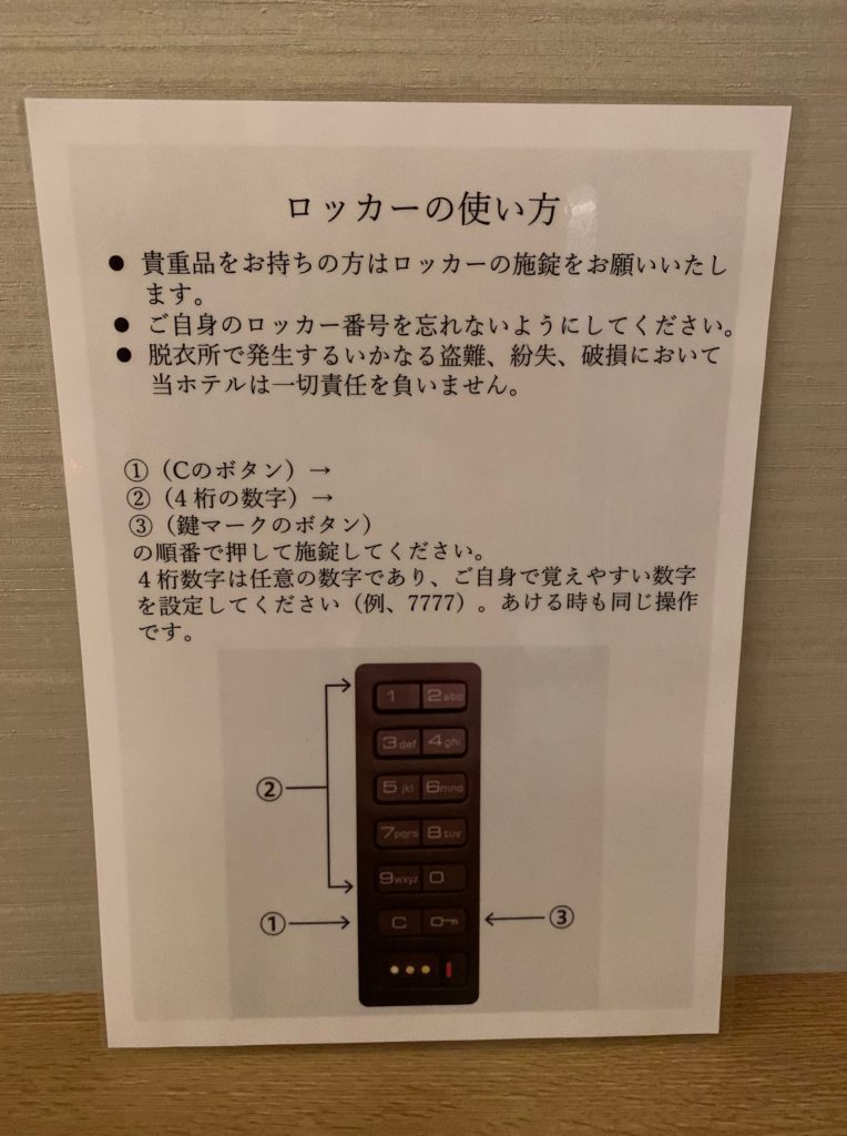 分かりにくいという苦情が多いのか再訪時にはロッカーの使い方が入っていました(笑)