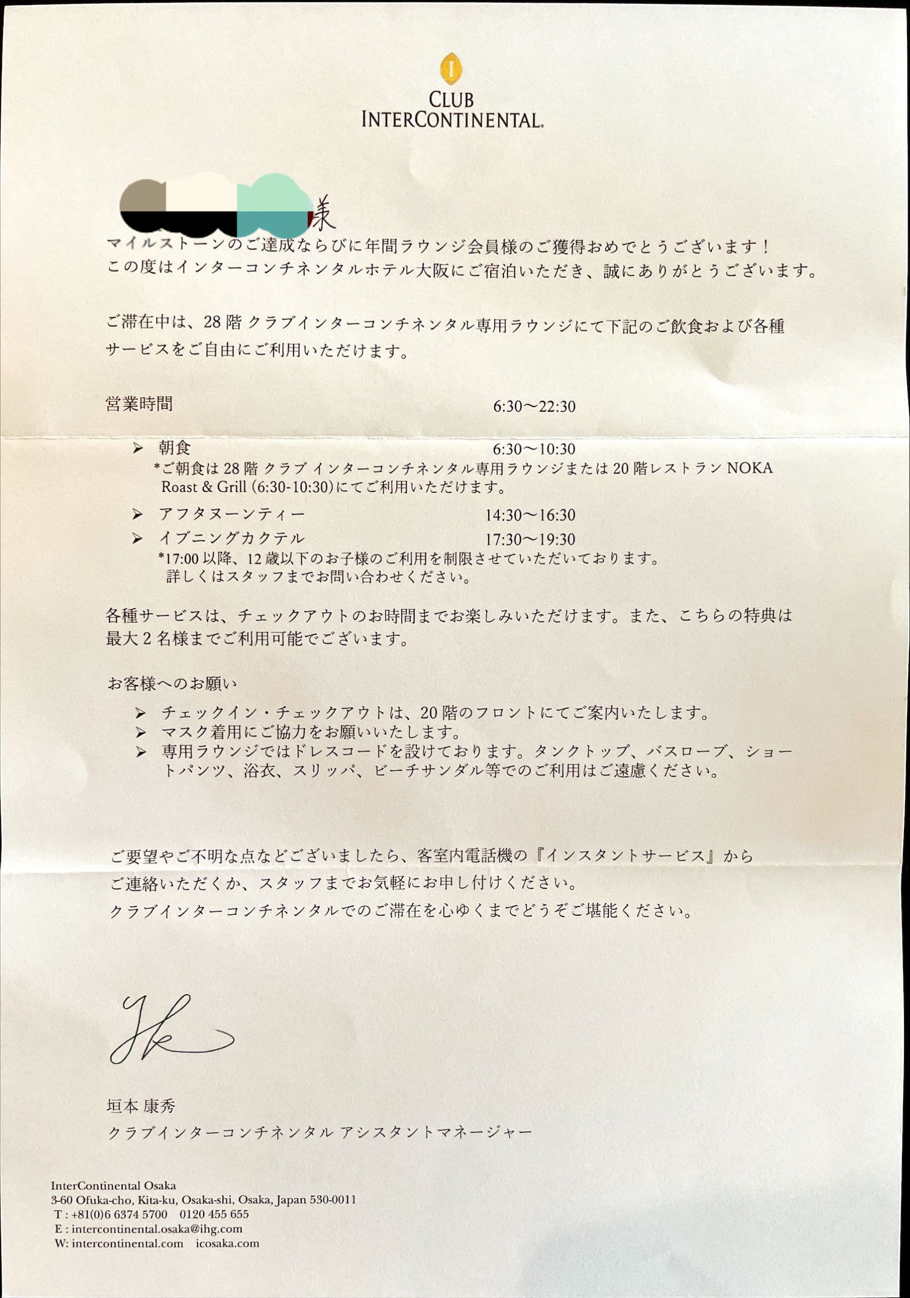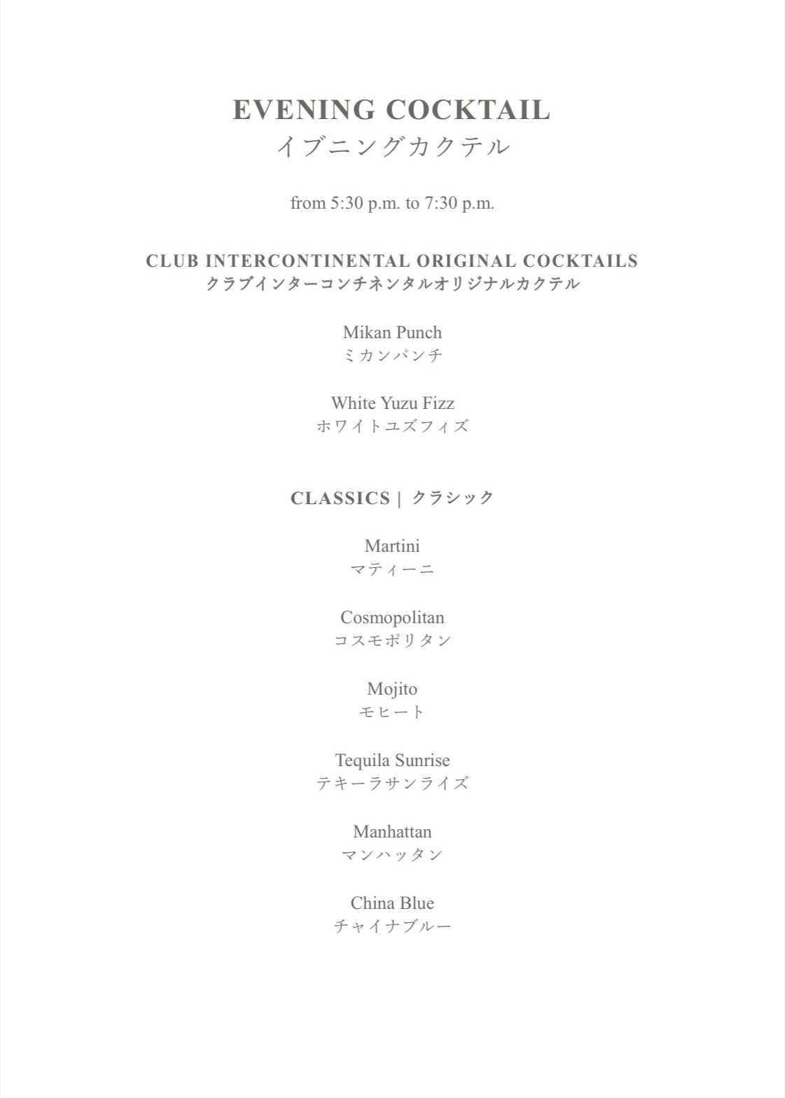 インターコンチネンタル大阪 クラブインターコンチネンタルラウンジ営業時間