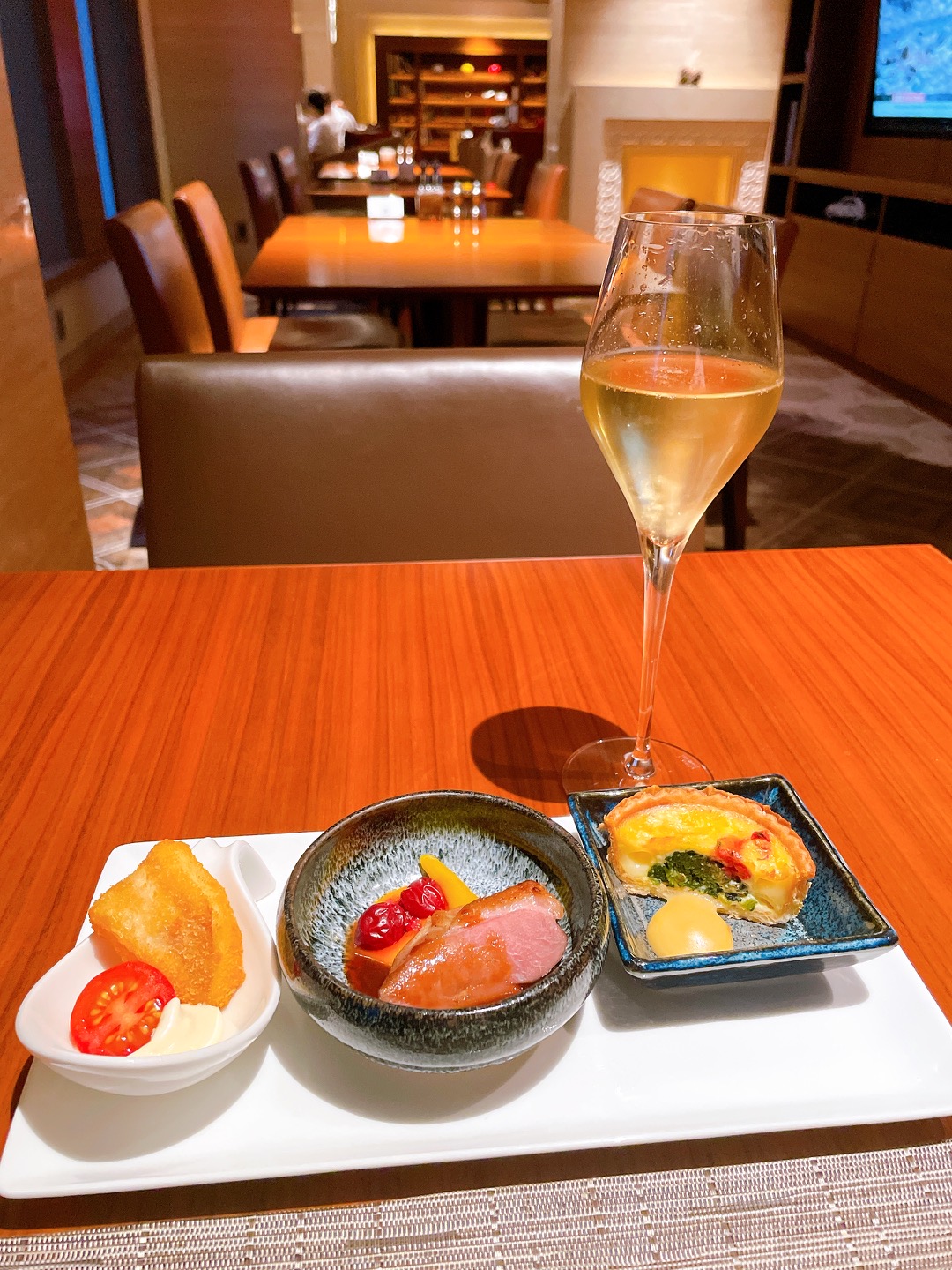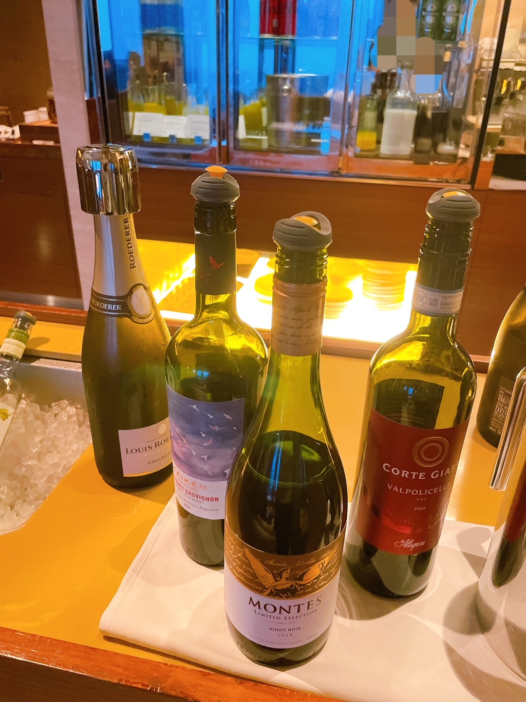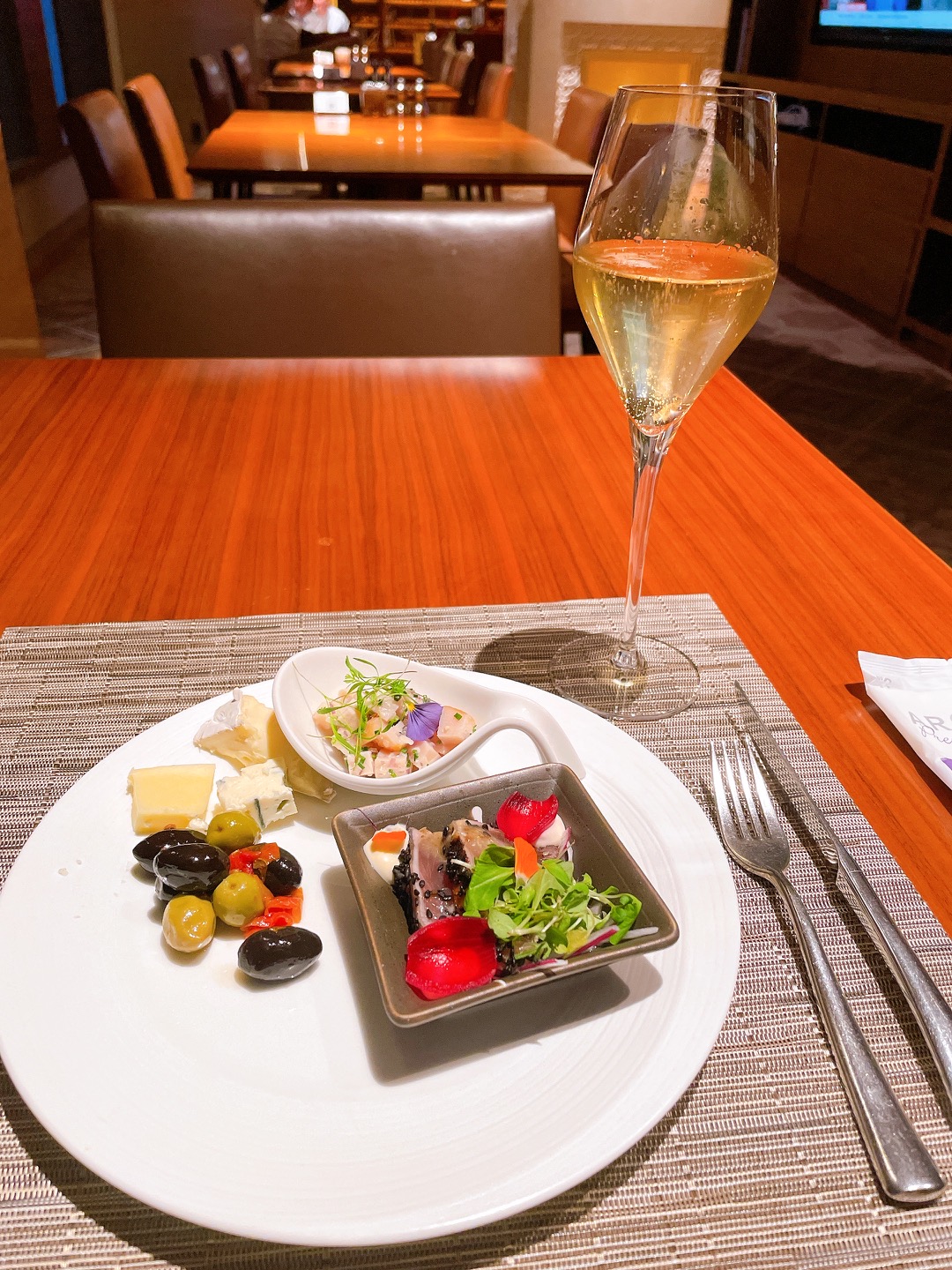 ラウンジがオープンしている時間は朝から晩までスパークリングワインやビールが飲めることがうれしいですね