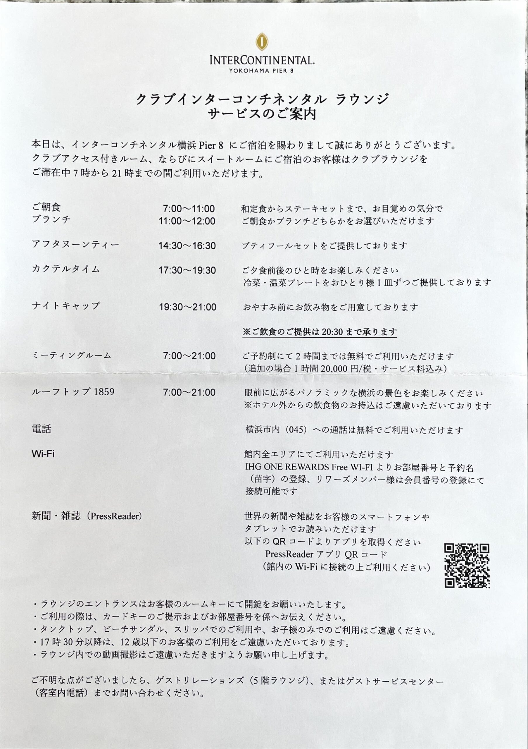 インターコンチネンタル横浜Pier8 クラブインターコンチネンタルラウンジ営業時間