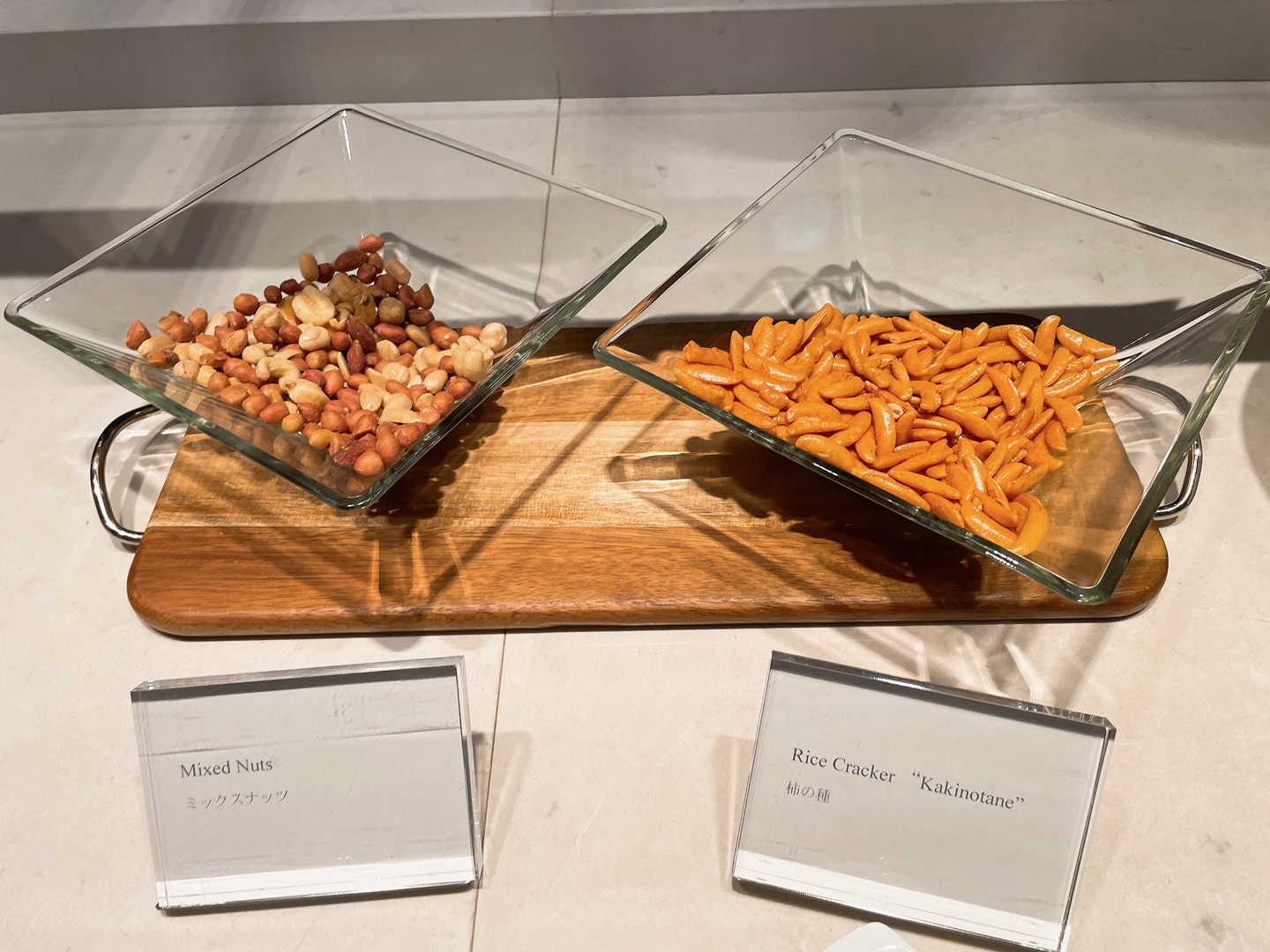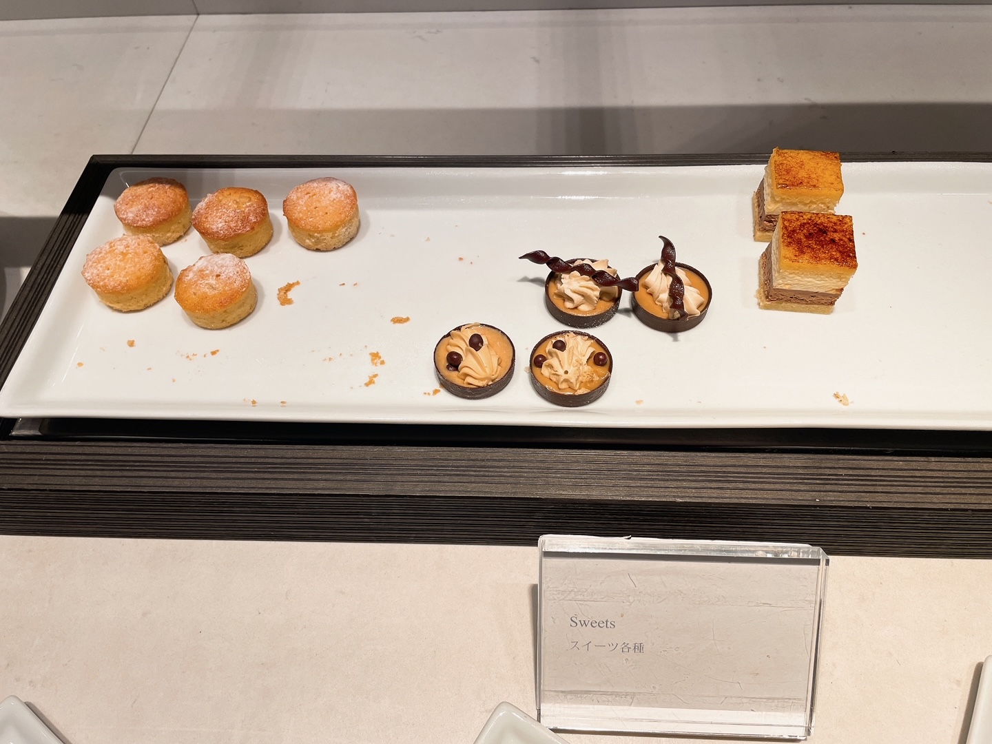 フードは以下の通りおつまみとスイーツが提供されます。この時間帯のみブッフェ台での提供で自身で取ってくるスタイルになります。