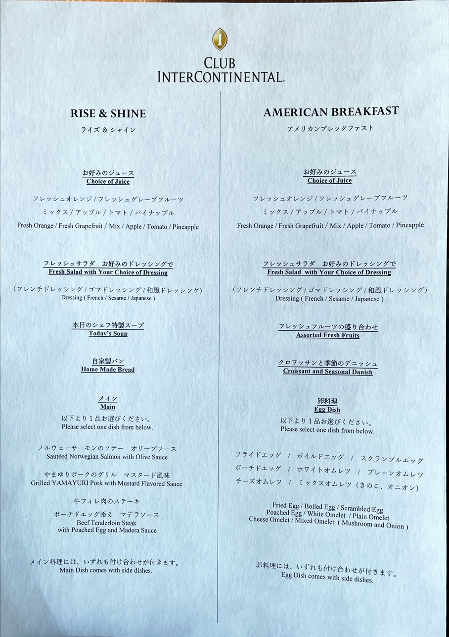 インターコンチネンタル横浜Pier8クラブインターコンチネンタルラウンジの朝食、ブランチ、アフタヌーンティー、カクテルタイム、ナイトキャップのメニューをご紹介します。朝からステーキが食べられることで有名ですが、それ以外のフードのレベルの高さ、サービスの心地よさ、ラウンジの雰囲気などいずれも満足度が高いラウンジでした。