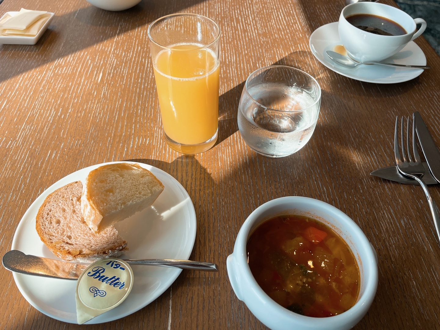 スープは玉子入りでけっこう塩味が強く、エッグベネディクトと合わせると個人的にはちょっと辛かったです…