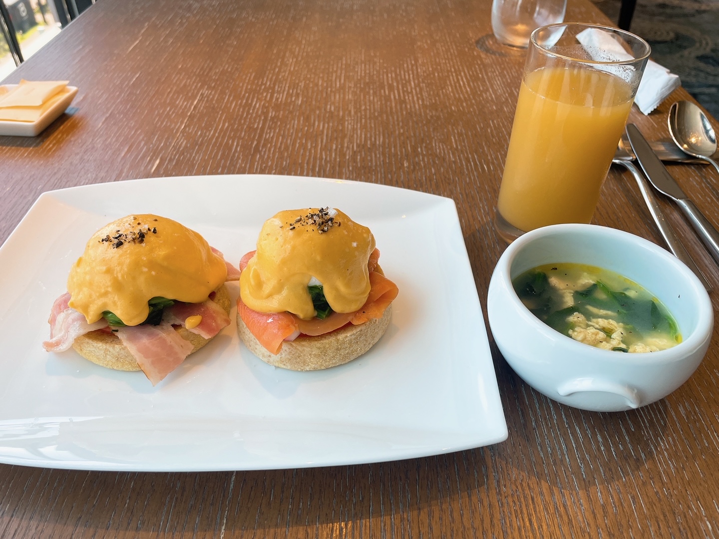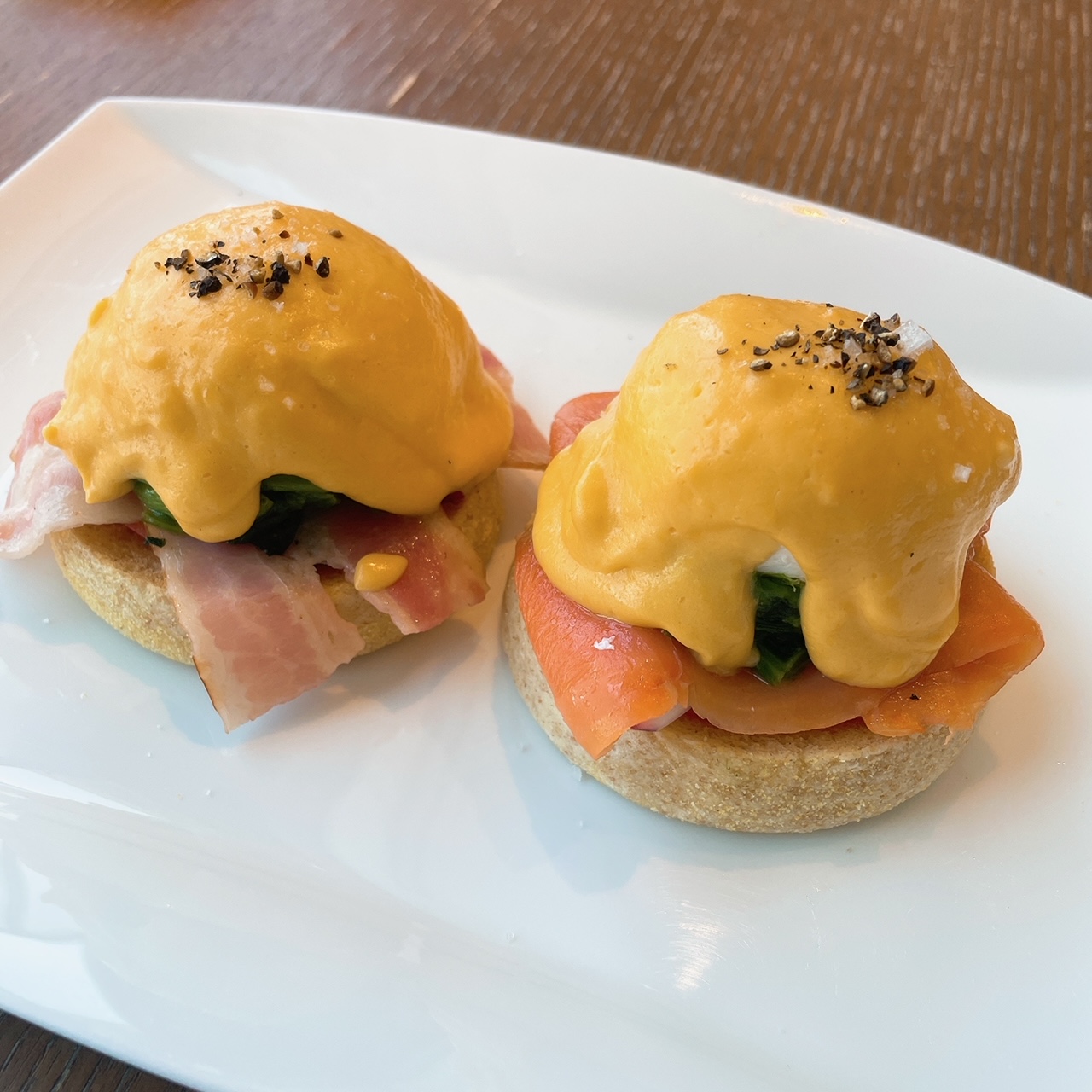エッグベネディクトはボリュームたっぷりで2つ食べるとかなり満腹になりました。オランデーズソースは酸味が少し強く感じました。